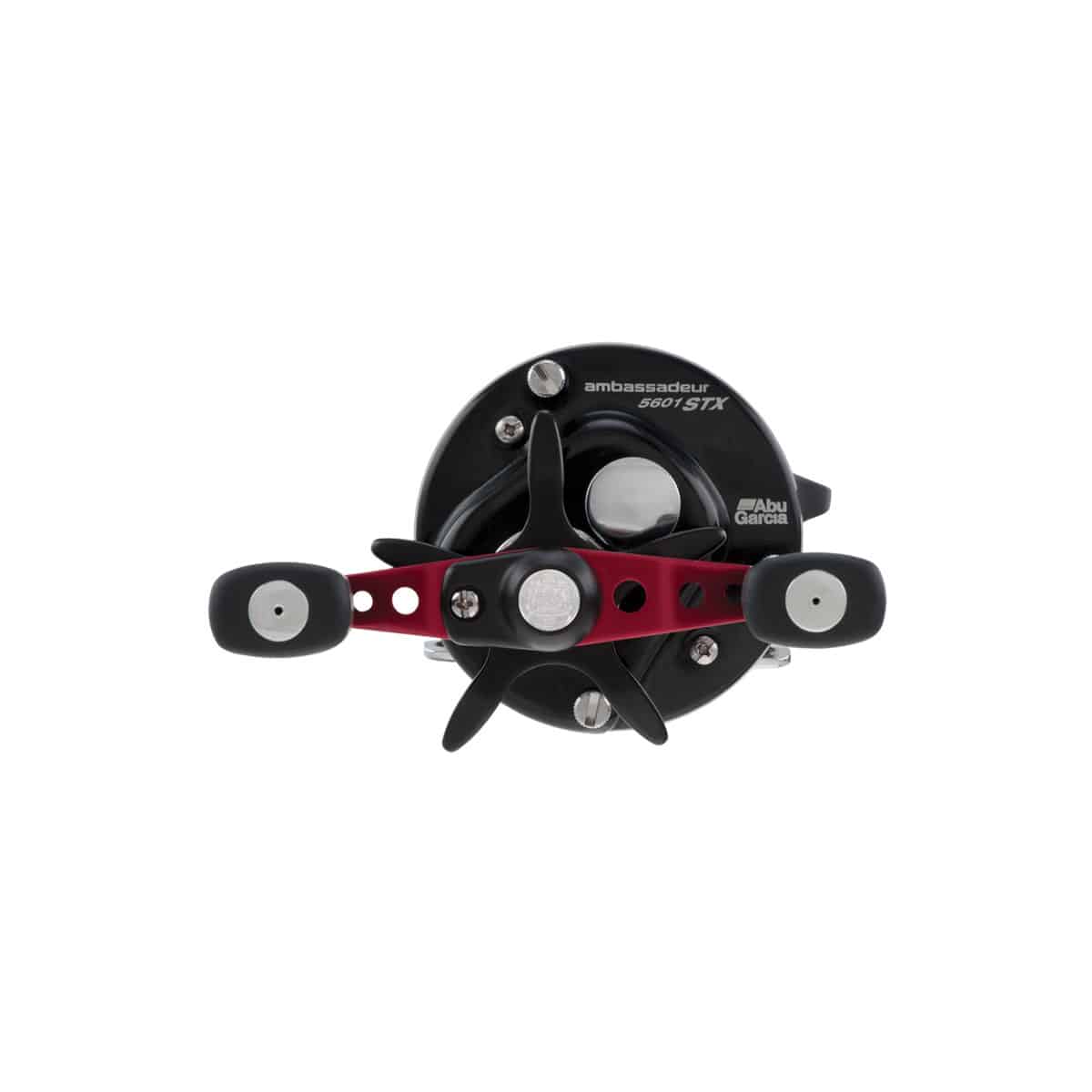 ABU GARCIA AMBASSADEUR STX รจ un mulinello rotante round di taglia 5601 (1 sta per sinistro). Grande componentistica e soluzioni all’avanguardia, inclusa la frizione multidisco, il freno centrifugo a 6 pin e il level wind sincronizzato. Corpo nero lucido con bobina rossa e particolari argento. Manovella curva da 90 mm anodizzata rossa con stella della frizione nera.