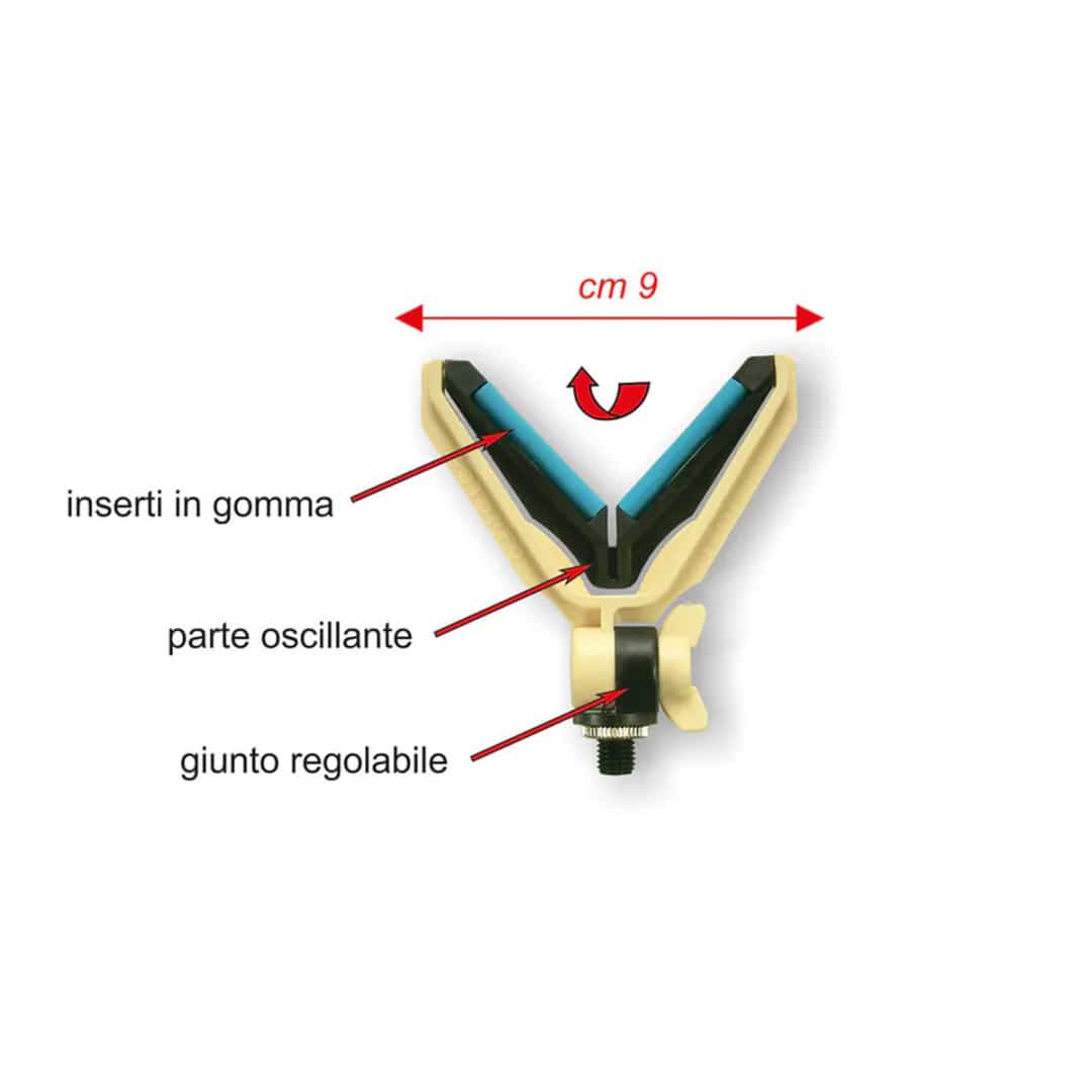 STONFO APPOGGIACANNA A V BASCULANTE è prodotto in materiale plastico resistentissimo con forcella a V basculante per avere sempre una corretta posizione rispetto alla canna. Munito di inserti in gomma per non danneggiare la canna. Attacco a vite con ghieretta regolabile. Fornito con Battipalo omaggio.