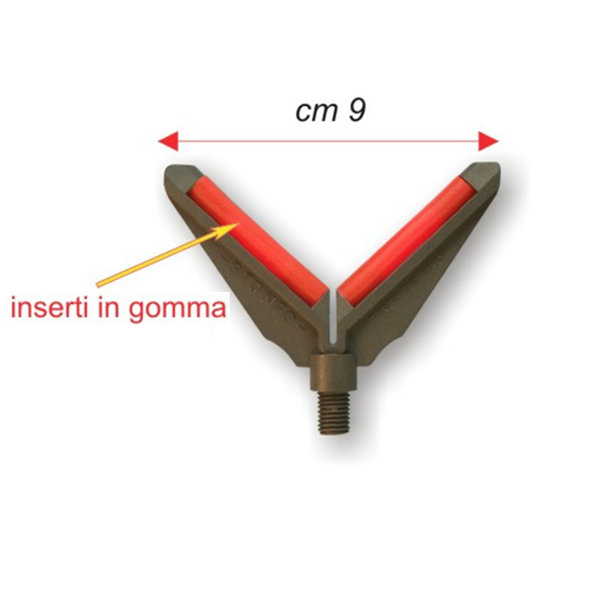 STONFO APPOGGIACANNE A V รจ prodottoย in materiale plastico resistentissimo, con inserti in gomma morbida per non danneggiare la canna.