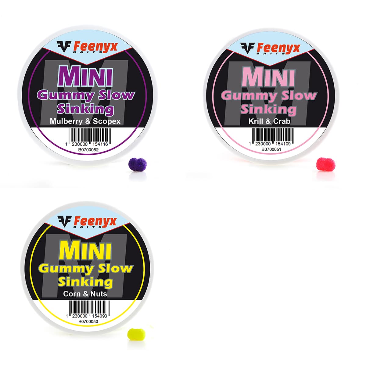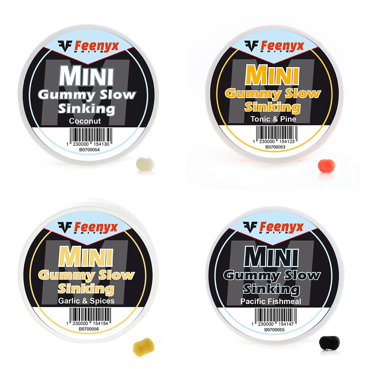 FEENYX MINI GUMMY SLOW SINKING è una ulteriore misura per l’ormai conosciutissima linea GUMMY. Alle misure 5mm e 7mm si aggiunge la versione MINI. Ideale per la pesca nella stagione invernale è estremamente efficace su pesci difficili e in acque con forte pressione come i nostri laghi commerciali. Conservando le caratteristiche di morbidezza, le sue ridotte dimensioni danno a questo innesco la possibilità di essere l’arma vincente nelle situazioni più difficili, facilmente innescabile su bait band e bajonette potrà essere usato anche con ami di piccole dimensioni. Questo ci permetterà di massimizzare l’autoferrata e diminuire le slamature bilanciando al meglio innesco ed amo. Come nelle versioni da 5mm e 7mm il nuovo MINI GUMMY è disponibile in sette colorazioni e sette aromatizzazioni diverse, per far fronte a qualsiasi situazione in pesca.