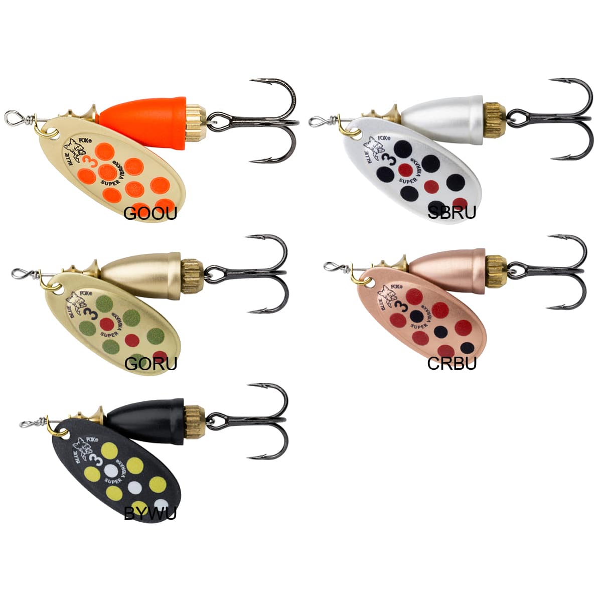 BLUE FOX VIBRAX UV è un cucchiaino rotante che è caratterizzato dalla verniciatura UV-BRIGHT. I colori classici hanno la paletta della paletta con 9 punti mentre i tre colori nuovi (FGESU, PPSU, PWSU) presentano tre punti. Il VIBRAX originale lavora a profondità variabili da 60 fino a 120 centimetri grazie alla sua paletta che ruota con un angolo di 45° rispetto all’asse centrale. Quando la zavorra colpisce la campana vuota, emette un suono a bassa frequenza che suscita l’attenzione e l’attacco dei predatori. La paletta di forma ovale gira e sfarfalla non appena tocca l’acqua. BLUE FOX VIBRAX HOT PEPPER 2 (6g) è equipaggiato con ancoretta VMC brunita misura #6.