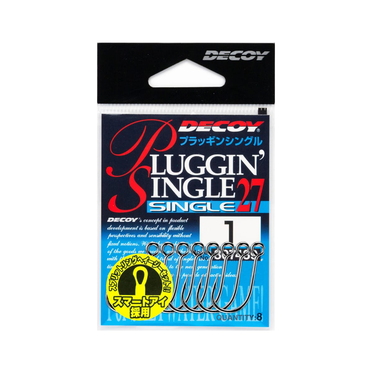 DECOY PLUGGIN SINGLE 27 è un amo forgiato ideale per sostituire ami e ancorette degli artificiali. Si tratta di un amo in-line che ha l’occhiello in asse con l’amo e consente di montare l’amo sull’artificiale con un solo split ring. Micro ardiglione. Finitura TIN (Aqua Block).