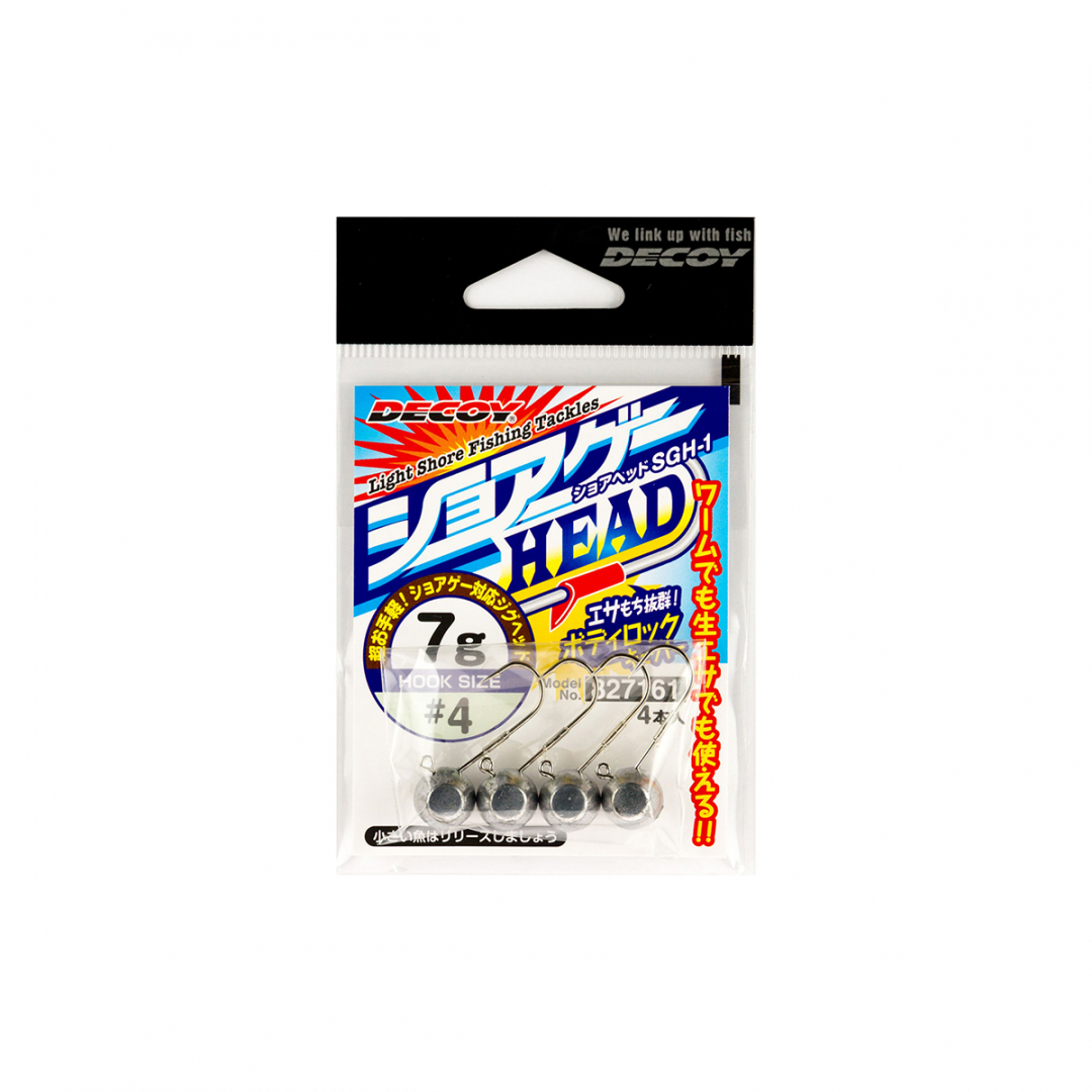 DECOY SGH-1 SHORE HEAD รจ una testina piombata di piccole dimensioni caratterizzata da una particolare forma della testa football e da un amo dal filo importante. Questa jig head รจ dotata di keeper in modo tale da tenere la softbait ancora piรน salda.