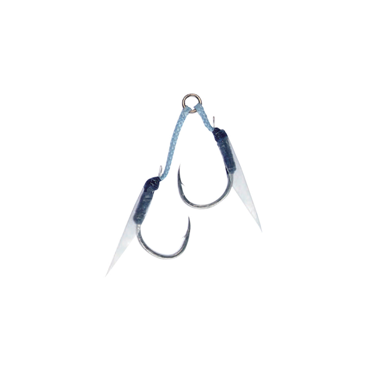 VANFOOK DT-30 DECO TWIN ASSIST รจ un assist hook doppio decorato con pelle di pesce per rendere l’esca ancora piรน attrattiva. Adatto a jig di dimensioni contenute per un light jigging sia da riva che dalla barca. Finitura Tin Silver. Varie misure disponibili.