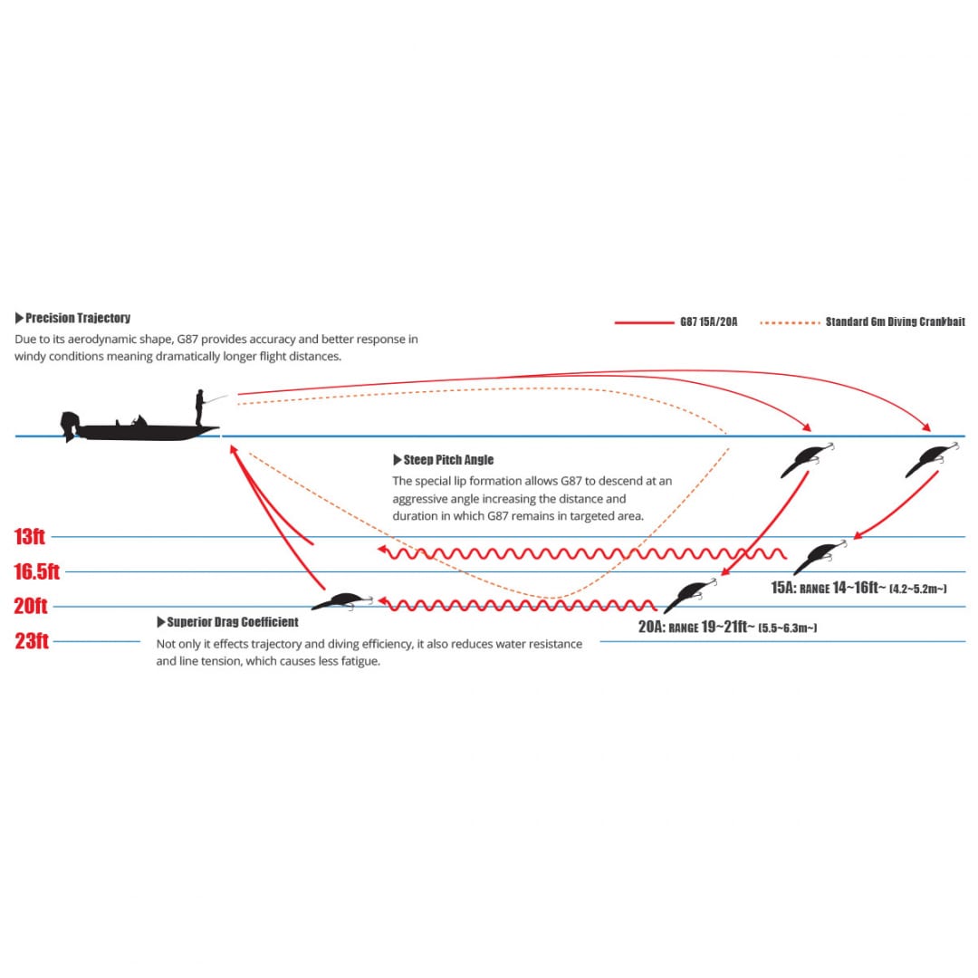 DUO REALIS CRANK G87 15A è un crankbait floating di profondità. Lo sviluppo di questo gioiello è stato attentamente messo in atto dal team di ricerca e sviluppo di DUO. La necessità di un crankbait che potesse davvero immergersi in profondità e raggiungere con precisione il suo obiettivo è stata profondamente desiderata dai pescatori professionisti. Il capo designer di DUO, Masahiro Adachi ha superato le aspettative mantenendo le misure contenute con il sistema di trasferimento del peso interno G-Fix. DUO REALIS CRANK G87 15A (87mm/34g) è un’esca di nicchia equipaggiata con due ancorette misura #2X che nuota tra i 4.2 e 5.2 metri di profondità. AARON MARTENS, pro staff DUO USA, ha disegnato alcune colorazioni. MADE IN JAPAN. FECO, prodotto Eco-friendly certificato dall’organizzazione giapponese JB/NBC.