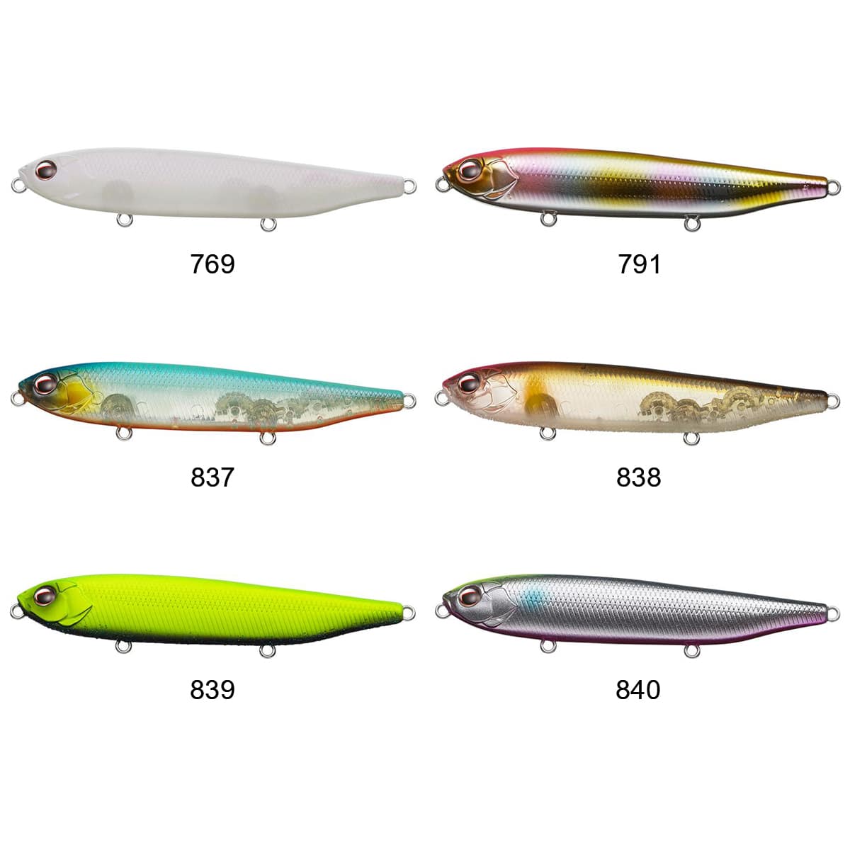 EVERGREEN COMBAT PENCIL JUSTINE 115 è un topwater walking the dog che fa parte della serie COMBAT LURES, ideata da Toshifumi Kikumoto dopo le richieste del pro angler americano Justin Kerr. La richiesta era quella di creare un wtd in grado di portare il pesca ad attaccare l’esca anche in situazioni di acqua trasparente, dove di solito il Bass (o spigola che sia) segue l’esca senza attaccarla per qualche metro per poi perdere interesse e sparire in profondità . Kikumoto oltre a sviluppare un movimento adatto a questa richiesta ha aggiunto anche una capacità di lancio veramente elevata. Il corpo ha la giusta dimensione per essere il pasto giusto per il predatore e l’assenza di rattling permette un richiamo diverso, fatto solo dalle vibrazioni impresse dal pescatore ad ogni movimento di polso. Da fermo la posizione è a 45° con soltanto la testa fuori dall’acqua. La posizione delle tre ancorette è studiata per eliminare l’eccessivo rollio in modo da restare sempre in posizione ottima per la ferrata. A prima vista sembra un classico wtd ma racchiude alcune particolarità non facili da trovare sui sui competitor. EVERGREEN JUSTINE (155mm/19.5g) è equipaggiato con tre ancorette Evergreen Treble Magic misura #6. Varie colorazioni disponibili.