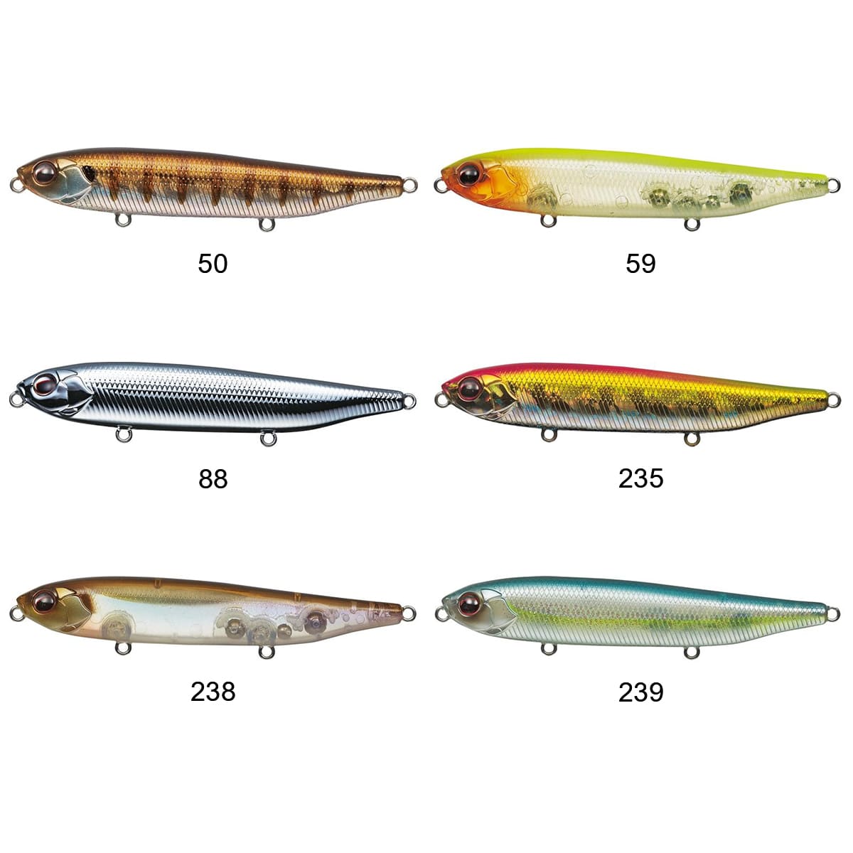 EVERGREEN COMBAT PENCIL JUSTINE รจ un topwater walking the dog che fa parte della serie COMBAT LURES, ideata da Toshifumi Kikumoto dopo le richieste del pro angler americano Justin Kerr. La richiesta era quella di creare un wtd in grado di portare il pesca ad attaccare l’esca anche in situazioni di acqua trasparente, dove di solito il Bass (o spigola che sia) segue l’esca senza attaccarla per qualche metro per poi perdere interesse e sparire in profonditร . Kikumoto oltre a sviluppare un movimento adatto a questa richiesta ha aggiunto anche una capacitร di lancio veramente elevata. Il corpo ha la giusta dimensione per essere il pasto giusto per il predatore e l’assenza di rattling permette un richiamo diverso, fatto solo dalle vibrazioni impresse dal pescatore ad ogni movimento di polso. Da fermo la posizione รจ a 45ยฐ con soltanto la testa fuori dall’acqua. La posizione delle tre ancorette (si, tre ancorette su un 95mm) รจ studiata per eliminare l’eccessivo rollio in modo da restare sempre in posizione ottima per la ferrata. A prima vista sembra un classico wtd ma racchiude alcune particolaritร non facili da trovare sui sui competitor. EVERGREEN JUSTINE (95mm/11g) รจ equipaggiato con tre ancorette Evergreen Treble Magic misura #8. Varie colorazioni disponibili.