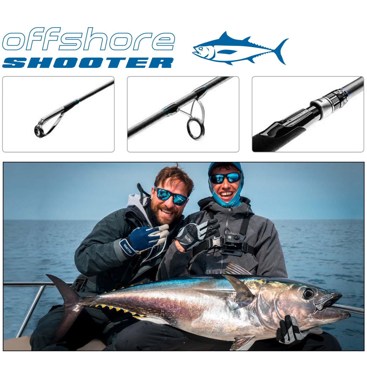 FAVORITE SHOOTER OFFSHORE รจ una serie di canne progettata per la pesca da riva o dalla barca utilizzando hard lures, minnow, stickbaits e popper. Le versioni piรน corte sono indicate anche per la pesca con esche siliconiche data la sensibilitร del fusto. Realizzate in carbonio alto modulo, con azione fast molto pronunciata, prodotte con sistema MLS Multi Layer Structure Slim che, grazie alla combinazioni di strati di carbonio di diversi moduli, permette di ottenere un fusto estremamente sottile. La lunga cima (con innesto Offset) รจ completamente rinforzata con tape di carbonio intrecciato (FX GRIP) per assicurare una ineguagliabile riserva di potenza.