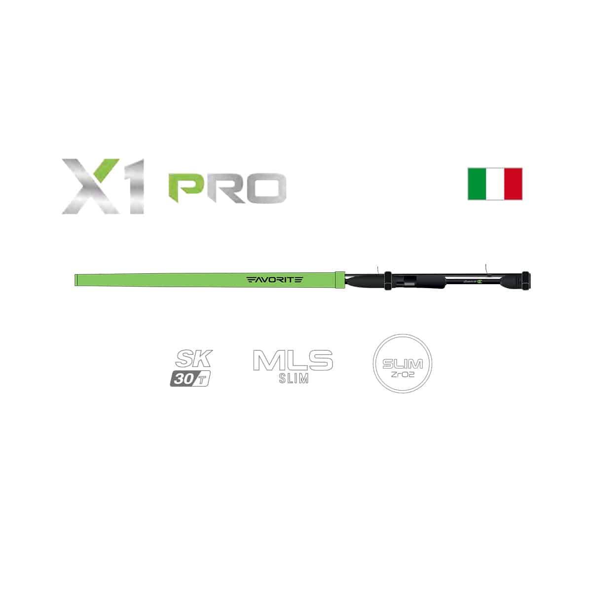 FAVORITE X1 PRO รจ la naturale evoluzione della mitica serie X1. Per la realizzazione di questo prodotto, realizzato da Favorite in esclusiva per lโItalia, il team รจ partito dalla selezione di azioni e lunghezze piรน vendute tra le X1 standard, con la certezza di incontrare nuovamente il favore di una grossa fetta di appassionati. Perchรฉ si parla di evoluzione, intanto perchรฉ il grezzo stesso รจ migliorato in termini di prestazioni, di sensibilitร e di rapiditร alle sollecitazioni. La fibra utilizzata รจ il carbonio 30T. Per garantire la massima rapiditร del fusto, รจ stato evitato il processo di rettifica in fase di finitura, lasciando ben evidenti le spire di avvolgimento della fibra di carbonio lungo tutta la canna (escluse le parti destinate alle grafiche). Lโanellatura della nuova X1 PRO ha visto una riduzione dei pesi e delle superfici passando ad una pietra extra-liscia con profilo super ribassato cosรฌ da ridurre gli attriti in fase di lancio per ottenere distanze superiori e soprattutto per diminuire i punti di frizione mentre il filo รจ teso in combattimento, riducendo cosรฌ il surriscaldamento del filo stesso e la perdita di tenuta. La pietra รจ montata su anelli con colorazione gun metal, piรน sobria e leggera anche nel design. Uno studio specifico รจ stato apportato alla forma dellโanello di partenza, optando per un anello mono ponte (piรน leggero) per le versioni 602 e 662 rivolte ad una pesca ultralight mentre per tutte le altre versioni della gamma รจ stato scelto un anello doppio ponte piรน rinforzato. Una parte importante del processo di progettazione รจ stata rivolta ad alleggerire il manico, che rimane sempre splittato, ma che cambia forma per favorire la maneggevolezza e il contatto con il grezzo stesso, migliorando le prestazioni di posa dellโesca, animazione della stessa e sensibilitร . Il porta mulinello a serraggio posteriore assicura il perfetto posizionamento del mulinello sulla canna, assicurando il perfetto bilanciamento dellโintero sistema pescante. LโEVA utilizzato per lโimpugnatura e ad altissima densitร , il che assicura la perfetta integritร anche dopo un utilizzo prolungato e particolarmente gravoso.