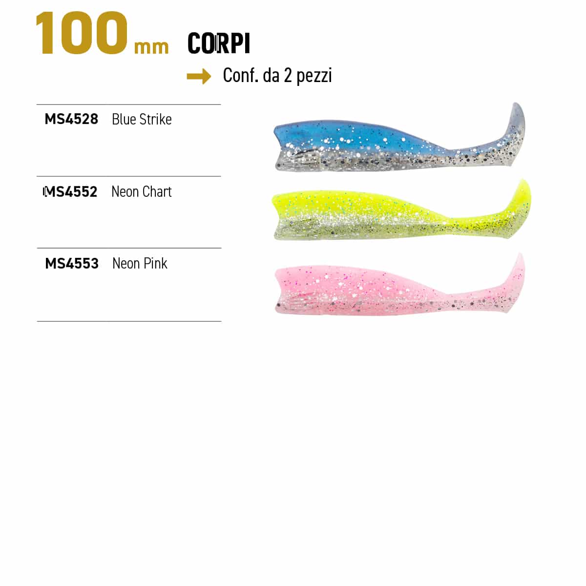 FIIISH MASTER SHAD N°4 CORPI è un blister che contiene due corpi del Master Shad da 10 centimetri per 8 grammi di peso. La color chart comprende colori Natural e colori Flash di cui alcuni UV per soddisfare tutte le situazioni di pesca.