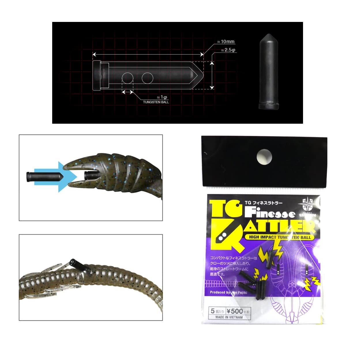 FLASH UNION TG FINESSE RATTLER รจ un rattle con sfere in tungsteno di appena un centimetro di lunghezza. Ideale per appesantire piccole esche senza aumentarne la sagoma. Misura unica.