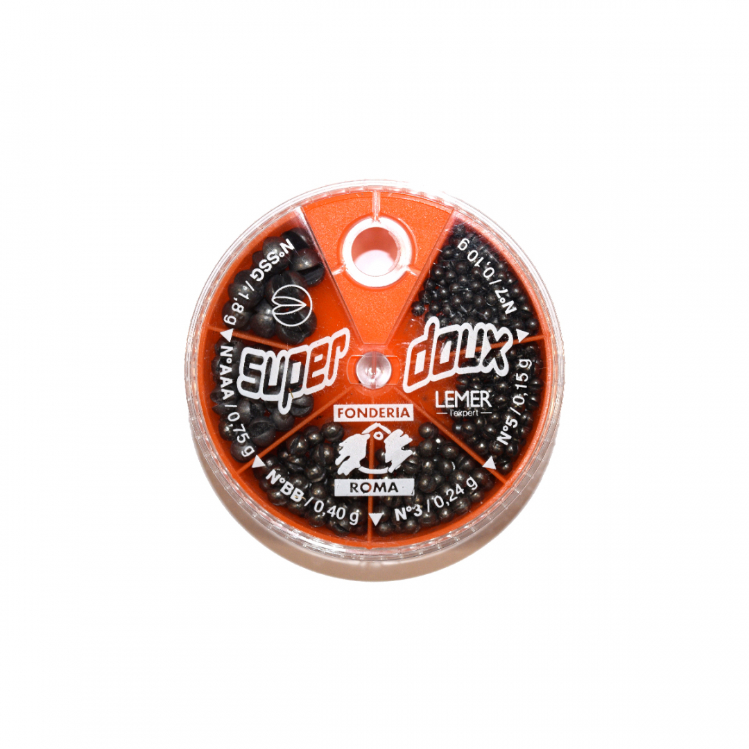 FONDERIA ROMA PALLINI SPACCATI EXTRA MORBIDI MARE è una mascotte composta da sei diverse misure di pallini spaccati extra morbidi. Questi pallini si chiudono con la semplice pressione delle dita e si possono togliere dal filo senza il rischio di provocare abrasioni allo stesso. Grazie alla loro sfericità , all’ottima qualità della materia prima e alla precisione della forma, garantiscono il giusto peso per ogni misura. Disponibile in due versioni, gialla con pallini fino a 0,75 grammi e rossa con pallini fino a 1,8 grammi.