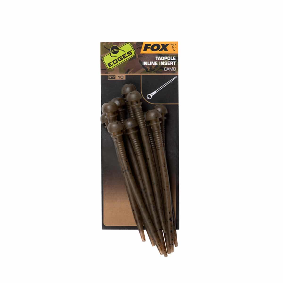 FOX EDGES CAMO TADPOLE INLINE INSERT è stato disegnato per consentirvi di creare una montatura semi-fissa inline in stile “shocker”. Il profilo flessibile assicura il piombo in posizione per garantire l’effetto “bolt”. Una volta che il pesce rimane allamato, il piombo può scorrere libero lungo il filo. Il pesce non può usare il peso del piombo per liberarsi dell’amo. Colorazione mimetica Edges Camo. Forniti in confezioni da 10 pezzi.