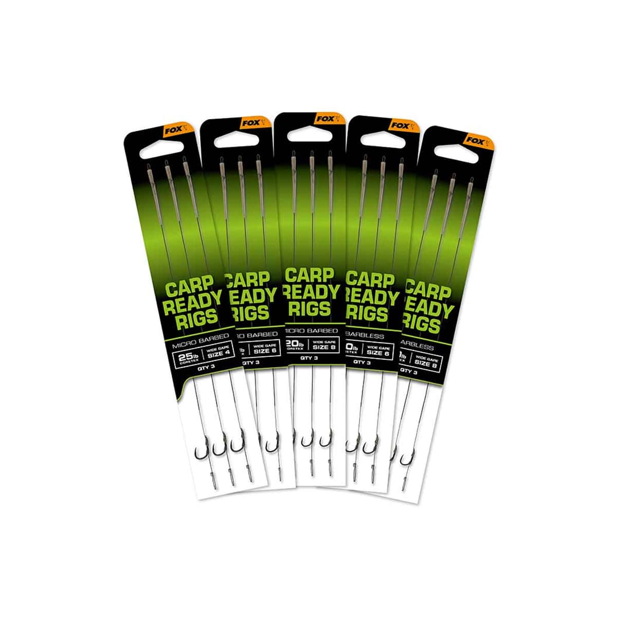 FOX EOS BARBLESS CARP READY RIGS sono rig pronti allโuso, semplici ed efficaci. Dotati del super affidabile amo da carpa Barbless Wide Gape Beaked Point. 20cm di Naturals Coretex 20 lb. Asola per fissaggio alla girella. Forniti con un manicotto anti groviglio. Forniti in una confezione di cartone riciclabile. Disponibili nelle misure di amo 6 e 8. 3 pezzi per confezione.
