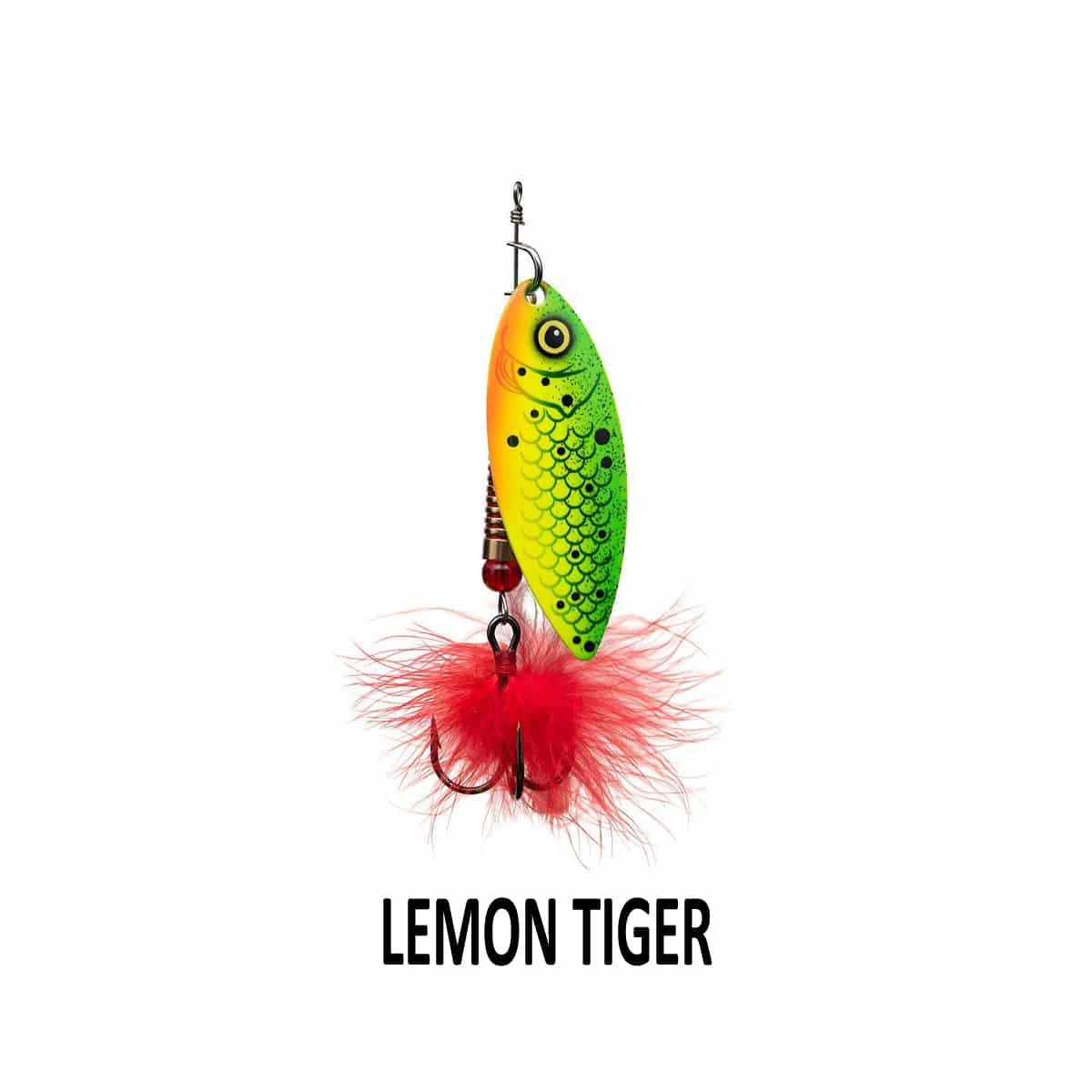 FOX RAGE ULTRA UV SPINNER รจ un cucchiaino rotante di dimensioni generose dal design โold schoolโ che incontra la moderna finitura UV. Si caratterizza per la elevata qualitร costruttiva, ideale per la pesca del Luccio. Finitura color argento nella parte interna della paletta per garantire una grande attrazione in termini di flash visivi nellโacqua. Design della paletta a forma di foglia per ottenere il massimo flash. Peso del corpo in ottone. FOX RAGE ULTRA UV SPINNER con la paletta misura #6 pesa 26 grammi ed ha l’ancoretta VMC misura #2/0 dressata in rosso.