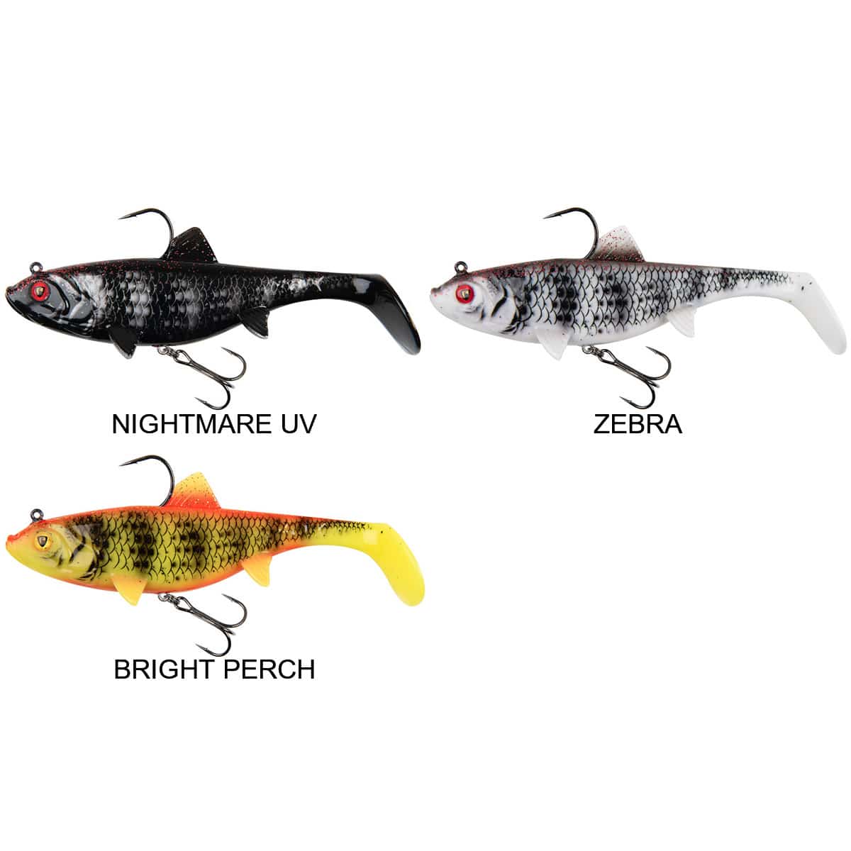 FOX RAGE WOBBLE REPLICANT รจ uno shad siliconico ultra resistente che รจ diventato storico per i pescatori di lucci di tutta Europa grazie alla sua efficacia. Si puรฒ utilizzare sia a traina che al lancio con attrezzatura da casting. Equipaggiato con amo singolo fisso sulla schiena e ancoretta snodata e avomivibile in pancia. SUPER NATURAL FINISH รจ una gamma di colorazioni che riproduce fedelmente la livrea naturale di alcuni pesci. La versione da 23cm pesa 140g ed รจ affondante.