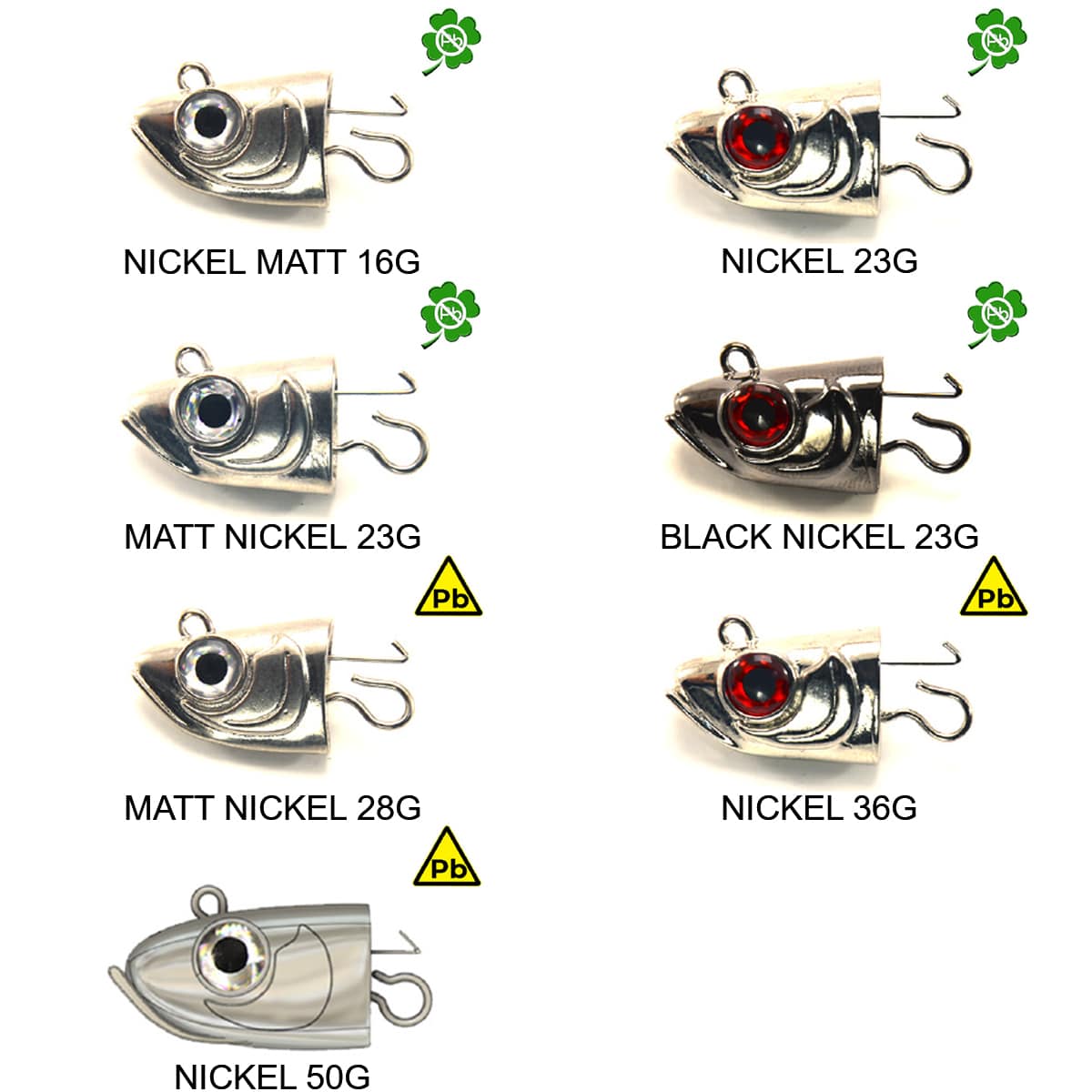 GT-BIO ROLLER SHAD 125 JIG HEAD è un kit composto da due teste. La finitura varia in Nickel, Nickel Matt e Nickel Black.