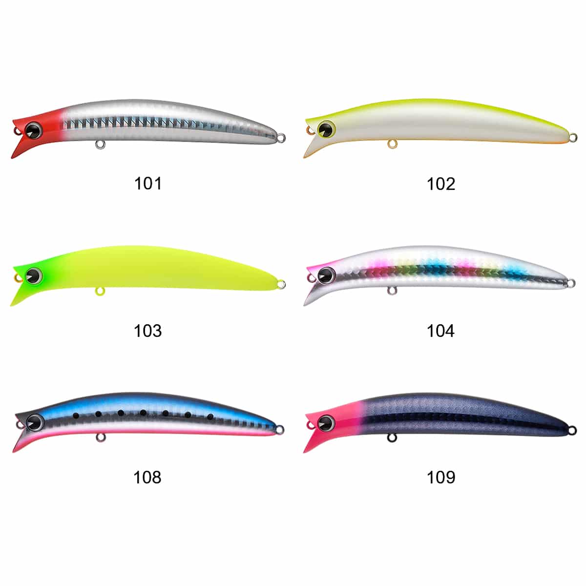 Il Darter per eccellenza, la prima esca ideata da IMA, la più imitata e mai eguagliata, il KOMOMO. Si tratta di un artificiale ideale per la pesca della spigola in acque medio basse, ma micidiale anche per la cattura di serra e barracuda nelle taglie più grandi. La sua azione mista rolling-wobbling rende il Komomo particolarmente efficace recuperato lento e regolare con traiettorie ad S molto naturali. Come si può intuire osservando la sua forma dlla testa si tratta di un darter-minnow, artificiale di superficie. Si nota un avanzamento del labbro superiore che lo rende come aspetto simile ad un popper. Può essere considerato come una wake-bait, un esca cioè in grado di creare un onda, una scia in superficie, naturale e del tutto uguale a quella creata da un pesce. La versione KOMOMO II (11cm/15g) floating affonda fino a 20cm ed è dotata di ancorette ST-46 #2.