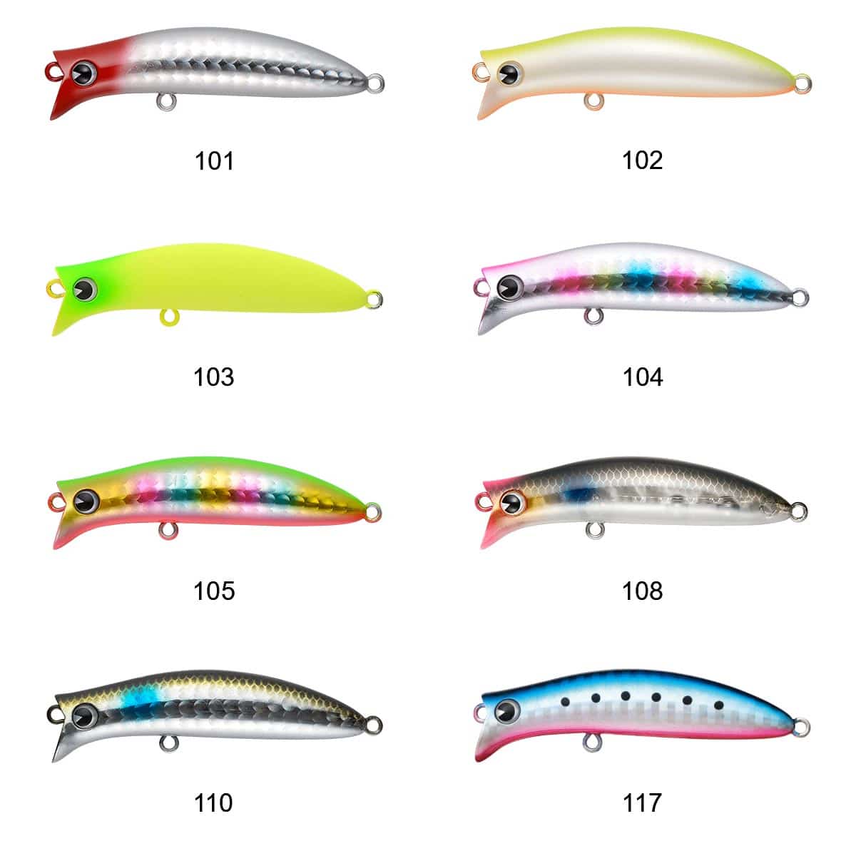 IMA KOMOMO II 65 come tutti i KOMOMO nuota appena sotto la superficie dell’acqua (10-20cm). Forte azione wobbling con elevata attrattività . Una micro esca che riesce a invogliare all’attaccato anche un predatore prudente come la spigola. All’inizio dell’estate, con l’abbondanza di pesce foraggio nelle acque poco profonde, KOMOMO II 65 ha la capacità di attirare l’attenzione del pesce in caccia. IMA KOMOMO II 65 (6.5cm/6g) è equipaggiato con due ancorette stagnate misura #10. Varie colorazioni disponibili.