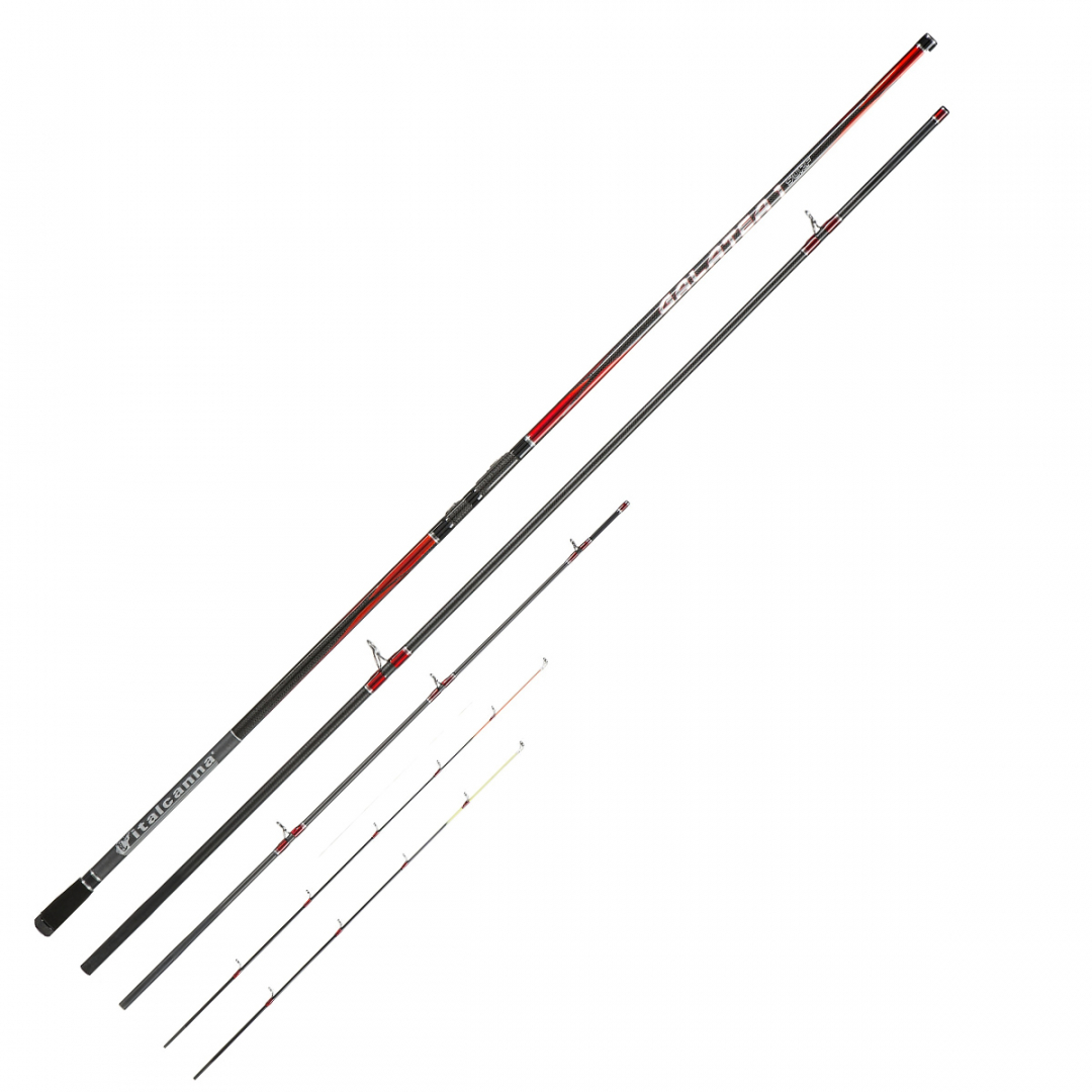 ITALCANNA GALATEAย รจ una cannaย potente e sensibile che gestisce bene i 100 gr con la vetta piรน dura ed รจ sensibilissima con il vettino da 60g per la pesca agonistica. Ottima per il pasturatore specie per le orate e i cefali. Sottile e ben bilanciata apre un capitolo nuovo nelle 3 + 2 pezzi da beach ledgering made in Italy. Realizzata con varie miscele di carbonio tra cui il prestigioso alto modulo da 395 g ed il sottile 1K si compone di 3 elementi asimmetrici piรน due vette ad innesto. Montando la vetta gialla la canna รจ lunga 4,30 m mentre con la vetta arancio arriva a 4,40 m. Viene montata di serie con anelli ultra-leggeri usati da tempo dagli agonisti del lancio tecnico ed apprezzati per il minimo attrito in aria durante il caricamento e la loro leggerezza.ย
