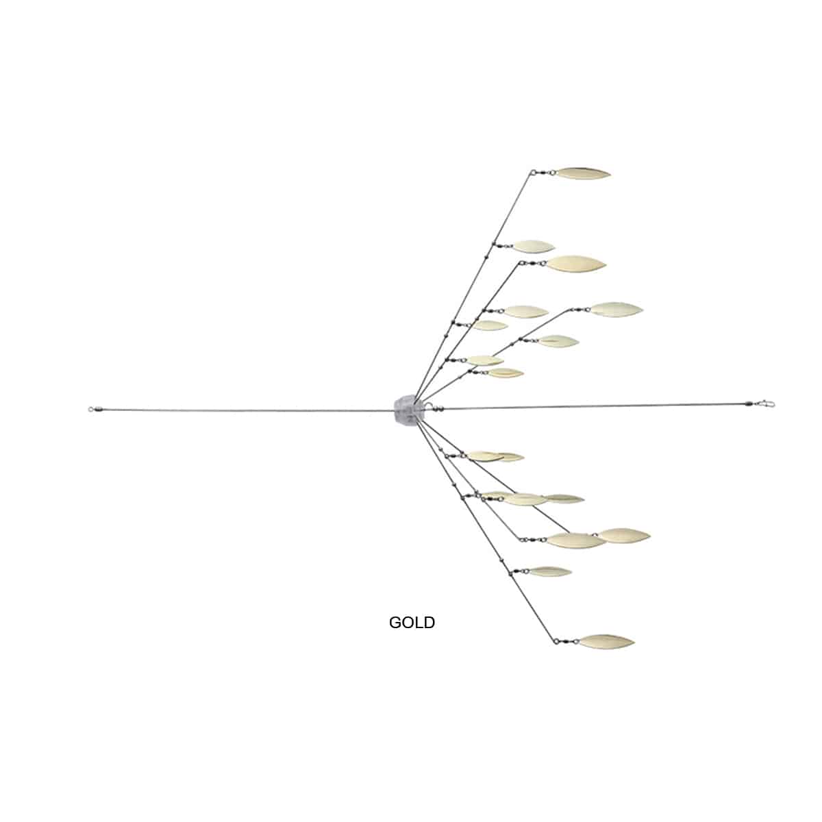 JACKALL BROS LUSTER BLADE 185 è una evoluzione dell’alabama rig! Come mai? Jackall Bros ribalta il concetto di costruzione inserendo un tappo a vite in plastica che permetterà di aprire e chiudere i sei bracci (lunghi 18.5cm) a piacimento risolvendo completamente il problema del trasporto (nella confezione sono presenti 2 tappi di ricambio). Le 18 palette sono state scelte per grandezza e posizione con lo scopo, non solo di creare turbolenza e lampi di luce imitando un branco di foraggio, ma anche quello di creare resistenza in acqua permettendo così un’azione ideale durante il recupero. La parte che andrà collegata alla lenza presenta una girella per smorzare le torsioni durante l’utilizzo. Inoltre, possiede anche un anello per attaccare un peso aggiuntivo in modo da poter far lavorare facilmente il sistema pescante a profondità più elevate. Il settimo braccio è quello “ferrante”, più lungo degli altri per imitare al meglio una preda staccata dal branco e più facilmente predabile. Le possibili combinazioni sono infinite, il pescatore può scegliere in base alle esigenze ed optare per una softbait a piacimento!