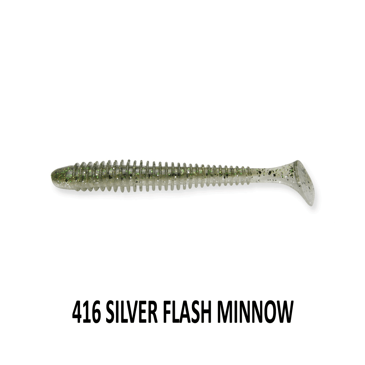 KEITECH SWING IMPACT è una soft swimbait che si caratterizza per la coda sottile e leggera che vibra a grandi velocità durante il recupero. La tecnica dello swimming valorizza le caratteristiche dell’esca, che ben si presta a recuperi lineari, senza interruzioni. Può essere montato Jig Head, Texas, Carolina, Down Shot, Neko Rig o come trailer su un jig. Si tratta di un artificiale davvero versatile. Si consiglia un recupero senza interruzioni o eccessivi movimenti impressi alla canna: utilizzatelo come fosse uno spinnerbait, e avrete grandi sorprese! Il disegno della coda è pensato per evitare che si alzi durante il nuoto ad alte velocità, perdendo l’assetto e la continuità di movimento. A qualsiasi velocità voi recuperiate, avrete sempre un’esca che nuota al meglio. La sezione anteriore del corpo vicino alla testa è leggermente schiacciata. La sezione posteriore del corpo vicino alla coda è appiattita in verticale. Questo particolare è stato progettato per avere un grande equilibrio complessivo, permettendo alla coda di oscillare ampiamente. KEITECH SWING IMPACT 4.5″ (11.4cm/9.1g) esce sul mercato a fine 2016 e presenta le stesse caratteristiche della versione da 4″ ovvero, in relazione all’innesco Texas Rig, sono stati realizzati due sottili incavi, uno nel dorso e l’altro nel ventre. E’ molto comodo in quanto la punta dell’amo si nasconde tra gli anelli. MADE IN JAPAN. FECO, prodotto Eco-friendly certificato dall’organizzazione giapponese JB/NBC.