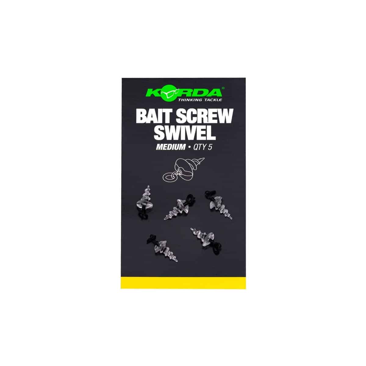 Cambiare l’innesco non è mai stato così semplice, grazie alla KORDA BAIT SCREW SWIVEL che permette di farlo in pochi secondi ed è compatibile con molti dei rig più diffusi. Possono essere utilizzate su qualsiasi rig per sostituire una Ring o Micro Ring Swivel inclusi lo Spinner rig e l’IQ D-rig. Possono essere utilizzate sia con le esche affondanti che con le pop-up e sono semplicemente avvitate sull’esca in senso orario e hanno superficie sufficiente per garantire che la boilie rimanga in sede durante il lancio. È possibile scegliere tra versioni medie o grandi. Ogni confezione contiene 5 pezzi.