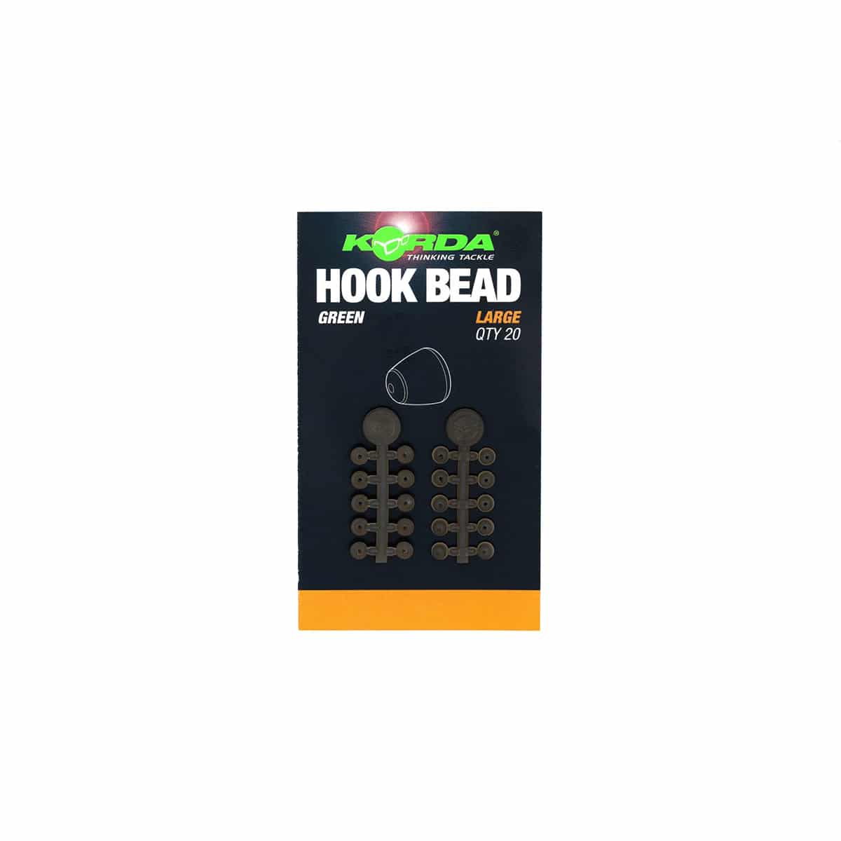 KORDA HOOK BEADS possono essere utili per qualsiasi rig che preveda l’uso di un anellino o di una micro girella sull’amo. Nonostante si tratti di un accessorio molto semplice, abbiamo dedicato molto tempo allo sviluppo di questo prodotto. Hanno una presa eccezionale che le mantiene perfettamente in posizione senza doverci applicare della colla, ma in caso di abboccata possono scorrere sull’occhiello. Presentano una forma affusolata e un’estremità piatta per far sì che un anellino o una girella vi si posizioni accanto potendo comunque scorrere sull’amo in caso di necessità . Ogni supporto contiene 10 Hook Bead che possono essere staccate facilmente anche quando si hanno le mani fredde: basterà infilare l’amo in una delle perline e poi tirare. Sono disponibili anche di dimensioni maggiori perché possano essere usate con ami più grandi e posizionarsi meglio sopra l’ardiglione. Sono compatibili con qualsiasi amo Korda di misura 2-10. Ogni confezione contiene 20 perline.