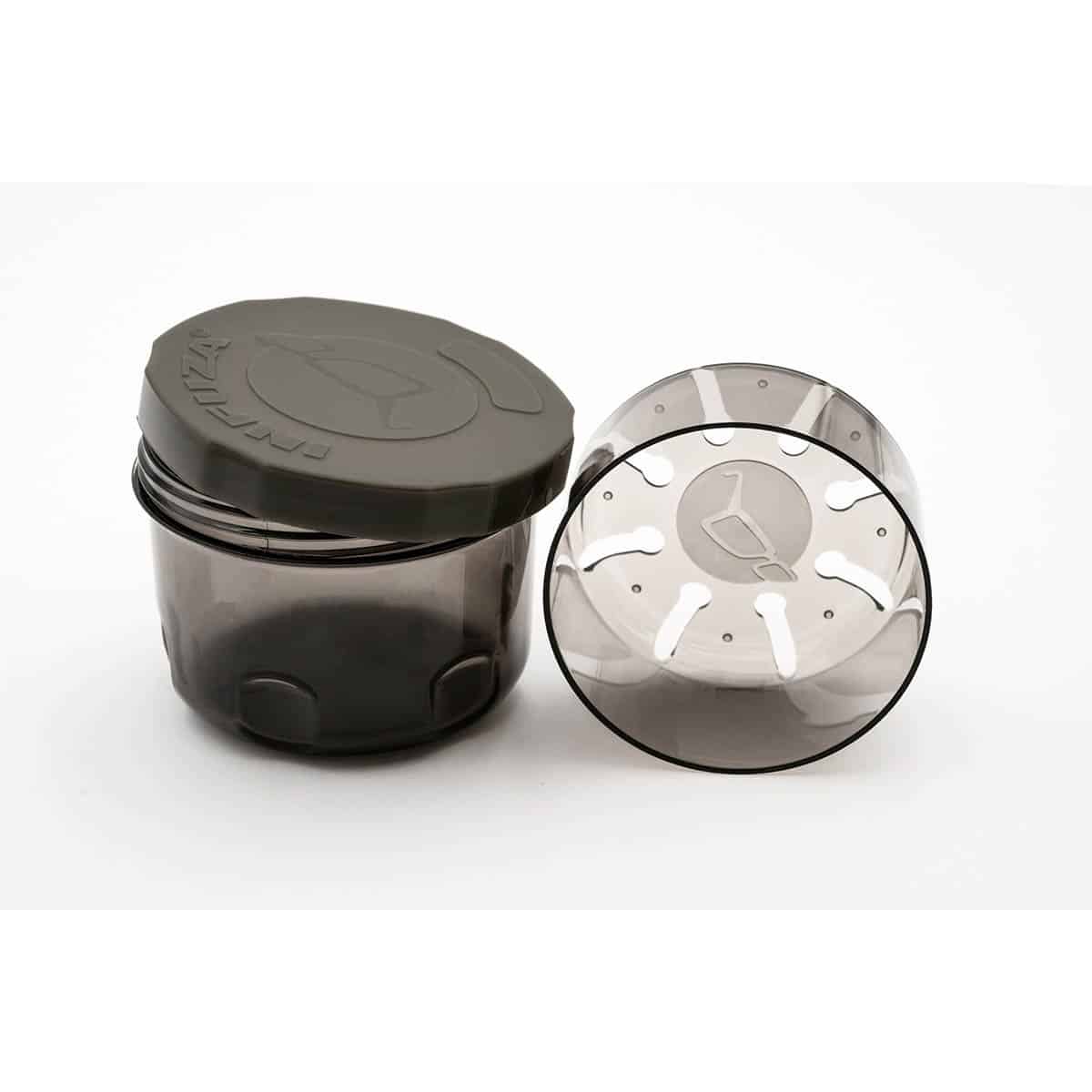 KORDA INFUZA รจ stato progettato specificamente per aggiungere il glug agli inneschi e vanta alcune caratteristiche che lo rendono unโopzione di gran lunga migliore rispetto all’aggiunta di attrattori liquidi nel sacchetto delle esche: Infuza contiene infatti un apposito vassoio interno con fori per il drenaggio che consente ai liquidi in eccesso di sgocciolare nella base, senza che il liquido sporchi ovunque quando si tolgono le esce per utilizzarle. Infuza risulta utile anche nel caso in cui si usino esche di diverse dimensioni e colori (o anche tipi, come nel caso di una miscela di pop-up e Fake Food immersi nello stesso liquido) in quanto sollevando il vassoio รจ facile vedere e scegliere lโesca desiderata. ร sufficiente scuotere lo strumento di tanto in tanto per assicurare che le esche rimangano ricoperte di liquido. Nel caso il liquido utilizzato sia un Supreme Goo, questo si assorbirร completamente nei pop-up e nei wafter. Infuza รจ dotato di un coperchio a vite per prevenire fuoriuscite di liquido ed รจ disponibile in due dimensioni: S e L.