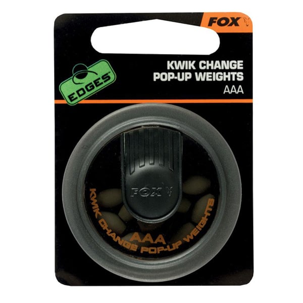 FOX KWICK CHANGE POP-UP WEIGHTS sono zavorre che forniscono al pescatore una moltitudine di possibilità di bilanciamento e distribuzione del peso. Disponibili in quattro pratiche misure per poter far fronte ad una varietà di impieghi. I pesi sono posizionabili semplicemente allungando un pezzo di tubetto in gomma e piazzandoli nella sede apposita. Questo dà vita ad un fissaggio sicuro che non danneggia il filo.
