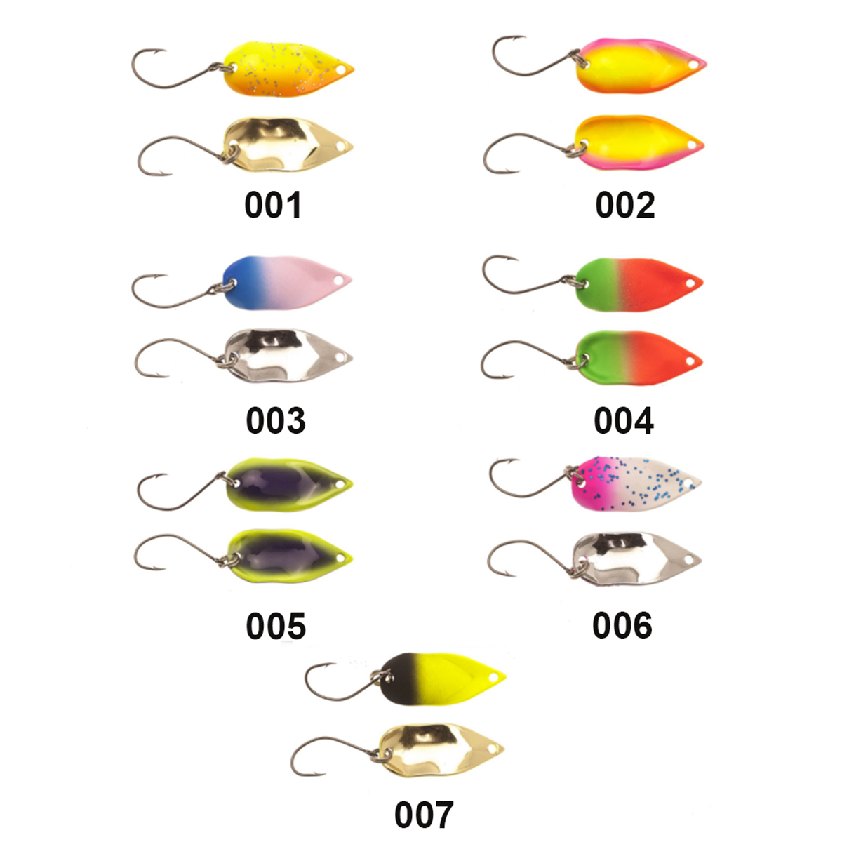 GAME BY LABORATORIO FOGLIA METALLICA รจ un ondulante per trout area di ultima generazione, dal profilo apparentemente classico, ma che se guardato con attenzione rivela un corpo del tutto anomalo. Perchรจ? Il profilo allungato presenta una serie di molteplici curvature sia in senso orizzontale che verticale che sui bordi laterali, fatte per creare piccole turbolenze percepibili chiaramente dalle trote (ultrasonic vibrations). Oltre a questo l’evidente depressione nei pressi della parte finale del corpo, che gli permette di mantenere un movimento wobbling efficiente anche con recuperi veloci o in caduta libera. Il Foglia Metallica รจ uno spoon all-rounder come caratteristiche, perchรจ si adatta a molteplici situazioni di pesca (dagli strati alti agli stradi intermedi 0.50 – 2.5 m). Questi ondulanti sono dotati di ami singoli di qualitร LABORATORIO STILETTO affilato chimicamente con micro ardiglione, e realizzato con colori innovativi, selezionati da esperti pescatori