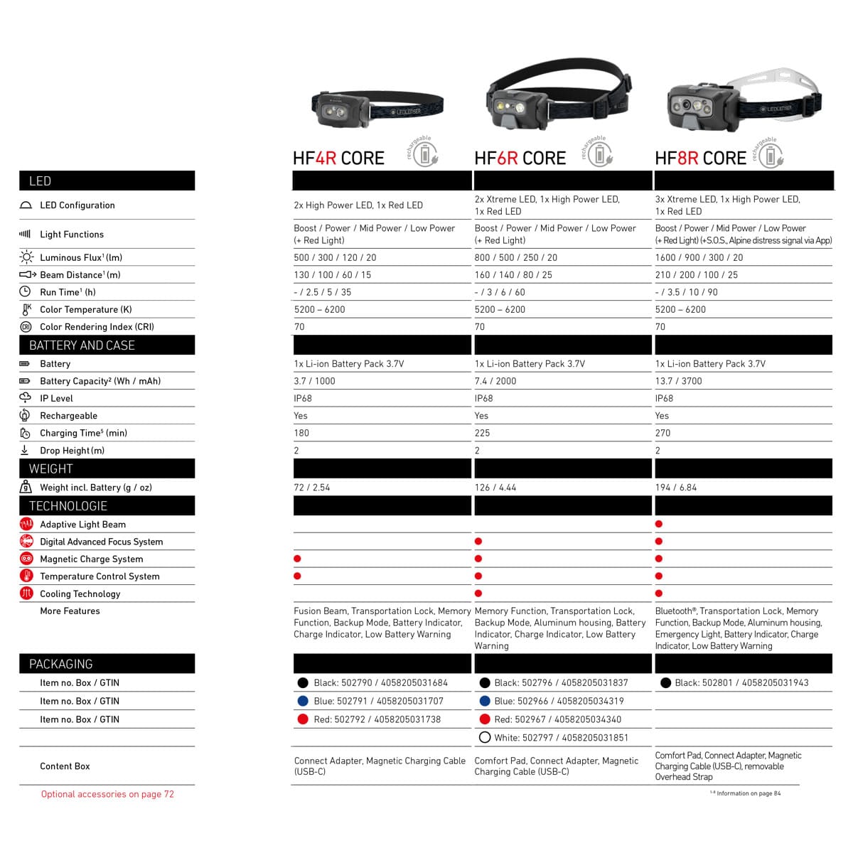 LED LENSER HF4R CORE fa parte della serie di torce frontali HF CORE. Prodotti sui cui si puรฒ fare affidamento ogni volta che serve. Modelli essenziali con LED secondario rosso, fascio luminoso premium ed eccellente rapporto qualitร prezzo.
