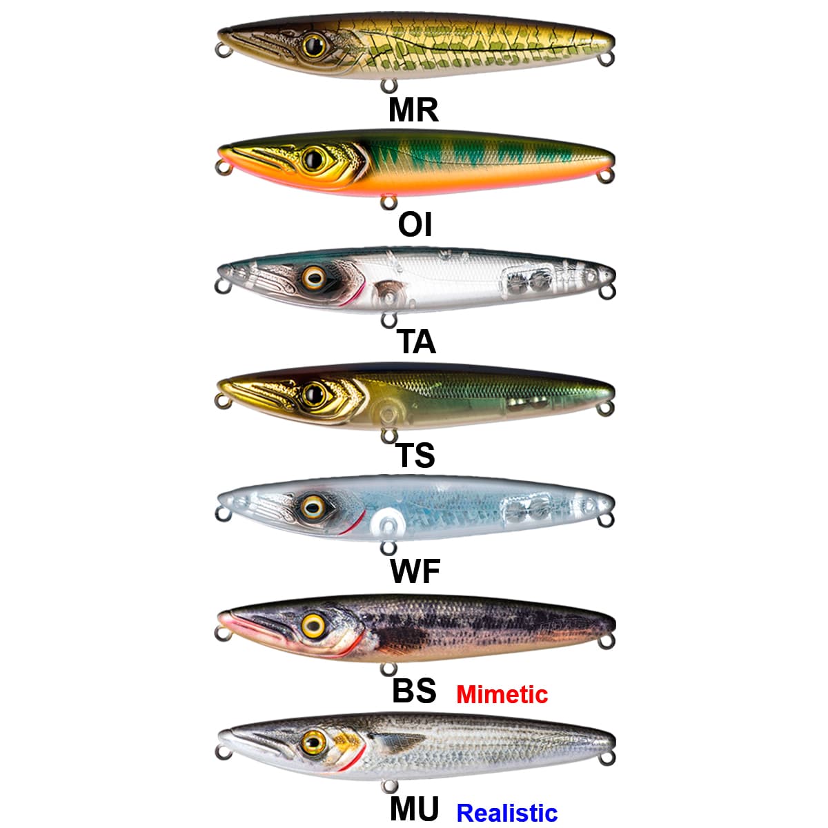 FISHUS BY LURENZO ESPETIT è un pencil galleggiante progettato per insidiare pesci sotto pressione, di solito molto difficili da ingannare con le stickbait. ESPETIT consente di raggiungere lunghe distanze con precisione e, una volta in acqua, risulta facilissimo da utilizzare con il movimento walking the dog. L’assetto da fermo è orizzontale quindi molto visibile da qualcunque predatore; ad il minimo colpetto di cimino mostrerà prima un fianco e poi l’altro provocando e scatenando l’attacco anche del più apatico predatore. Disponde di due cavità per regolare la quantità di bolle prodotte a seconda di come viene utilizzata, creando confusione a galla durante il recupero. FISHUS BY LURENZO ESPETIT 95 (95mm/10.5g) è equipaggiato con due ancorette misura #6 ed è prodotto sia in versione rattling che silent. La versione con il rattle interno genere una frequenza specifica per i momenti in cui è necessara ancora più vibrazione. Varie colorazioni disponibili.