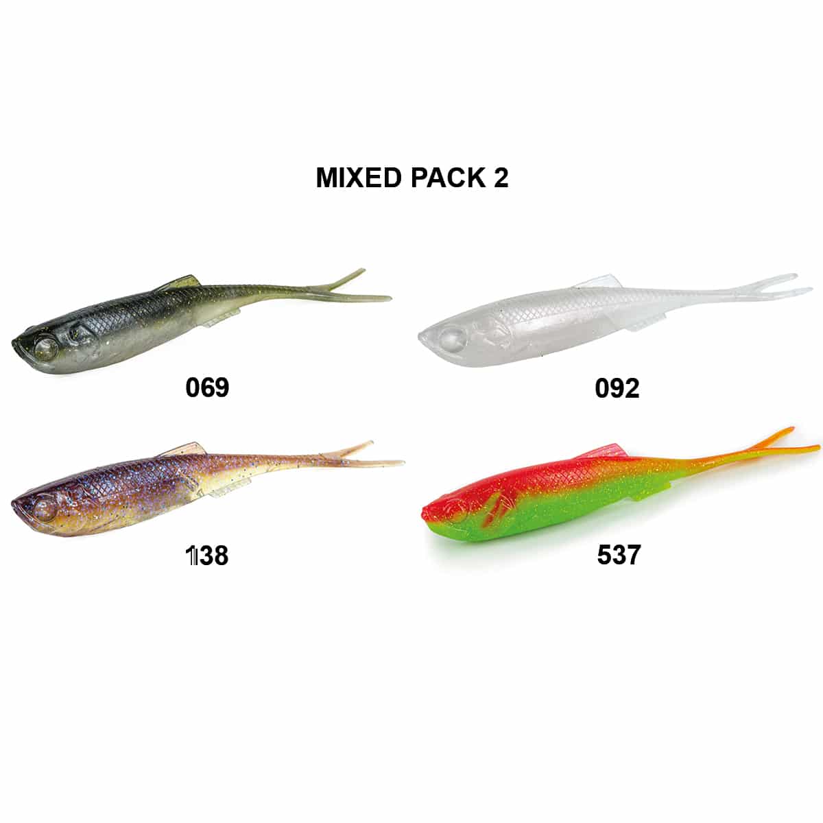 MOLIX RT SHAD FLEX 5″ MIXED PACK contiene 4 softbait in quattro colori differenti.