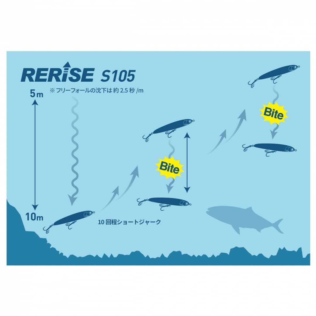 MARIA RERISE S105 è un pencil bait affondante caratterizzato da un rapporto peso volume molto elevato, è stato sviluppato per pescare da moli o scogliere alte in quanto l’affondamento veloce, simile ad un metal jig, permette di pescare tutto lo strato d’acqua. Come si usa?? In pratica una volta lanciato si lascia affondare una decina di metri, un affondamento orizzontale e veloce fino ai 10 metri di profondità , per poi imprimere qualche jerkata lunga per farlo risalire di qualche metro. Dopodichè va fatta affondare di nuovo per qualche metro ed è in questo momento che avverrà la mangiata!! Queste caratteristiche lo rendono molto interessante anche per la pesca in barca al tonno. MARIA RERISE S105 (105mm/40g) ha una velocità di affondamento stimata di circa 2,5 sec/m ed è equipaggiato con ancorette ST-56 #2. Varie colorazioni disponibili. Made in Japan. FECO, prodotto Eco-friendly certificato dall’organizzazione giapponese JB/NBC.