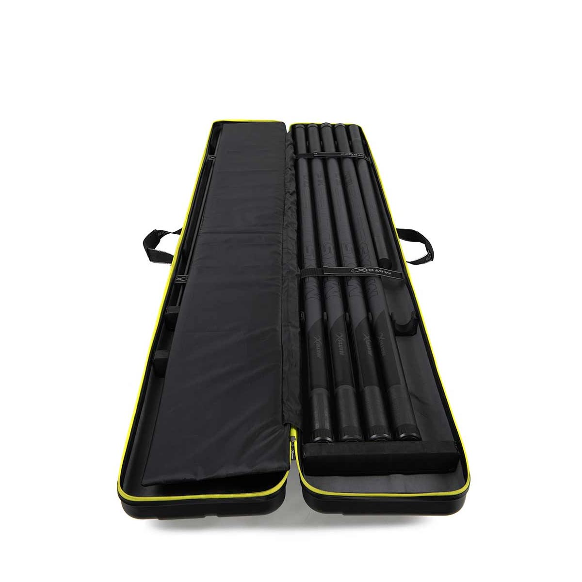 MATRIX DURALITE PRO XL CASE è un fodero progettato in modo da poter riporre una roubaisienne, le sezioni di ricambio e i top kit senza bisogno di tubi. Costruito in materiale resistente per offrire la massima protezione alla canna, è in grado di contenere 30 top kit più 4 sezioni del manico (roubaisienne da 17,5 m). All’interno è dotato di inserti in schiuma rimovibili (ideali per distanziare e mantenere fermi i top kit e le sezioni della roubaisienne). La divisoria imbottita impedisce a qualsiasi parte in carbonio di subire danni durante il trasporto. È lungo 195 centimentri in modo da poter ospitare il kit monopezzo e le sezioni più lunghe della roubaisienne. Anche la fodera interna è imbottita per una maggiore protezione. Cinghie di fissaggio interne. Per il trasporto è dotato di manici in morbido neoprene e anche di tracolla rimovibile. Facile accesso con cerniera a tutta lunghezza.