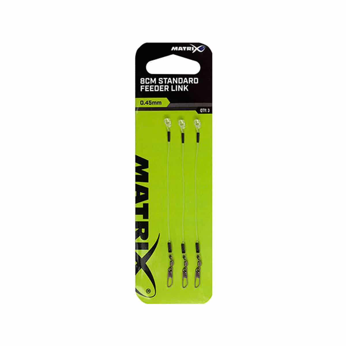 MATRIX FEEDER LINKS sono disegnati per terminali da pesca โfree-runningโ. La connessione rigida crea una sezione che aiuta a prevenire grovigli. Assemblaggio manuale con componentistica Matrix. Perlina esclusiva scorrevole Matrix ottenuta tramite stampo.