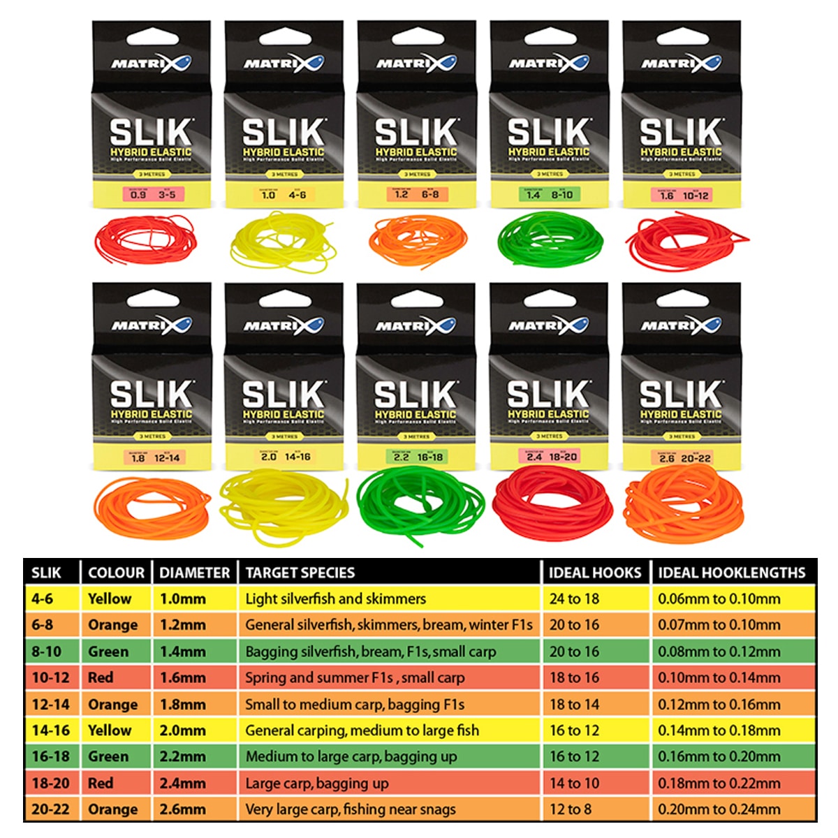 MATRIX SLIK HYBRID ELASTIC è un elastico da roubasienne ibrido perfetto tra quello solido ed quello cavo. Prodotto in Italia in esclusiva per Matrix. Tutti i vantaggi di un elastico cavo senza appiattimenti o bolle d’aria. Finitura esterna ultra-liscia garantisce elevate prestazioni in termini di anti-aderenza. SLIK lavora perfettamente con qualsiasi temperatura. Estremamente durevole. Fornito in spezzoni di 3 metri. Disponibile in 10 misure per coprire tutti gli stili di pesca con la roubaisienne.