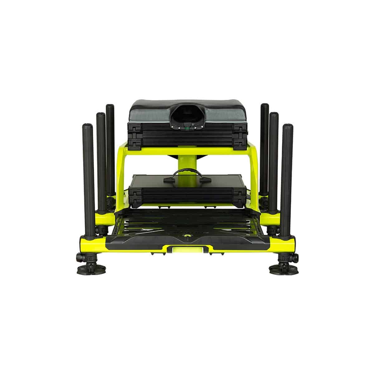 MATRIX XR36 PRO LIME SEATBOX è un panchetto che nasce per migliorare ulteriormente il MATRIX S36 SUPERBOX mantenendo l’affidabilità e il rapporto qualità/prezzo. Costruito con un esclusivo telaio in alluminio “Hydro formed”, con design a tubo singolo. Dispositivo singolo di sgancio della pedana. Copertura durevole della pedana in plastica con livella a bolla integrata. Gambe estensibili anti-scivolo anodizzate, da 36 mm. Tappi filettati su tutte le gambe. Sistemi di fissaggio delle gambe re-ingegnerizzati che non lasciano segni. Manopole larghe in gomma, ottenute tramite stampo. Sistema con singolo pin per sganciare il contenitore posto sotto al telaio. Seggiolino ammortizzato in robustissimo PU con doppia colorazione, caratterizzato da una livella a bolla integrata e da un supporto per la roubaisienne. Quattro punti di fissaggio per una tracolla imbottita removibile.