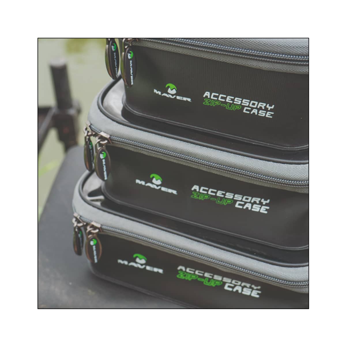 MAVER EVA ZIP-UP ACCESSORY CASE è una serie di tre borse sviluppate per proteggere e trasportare l’attrezzatura. Costruite con materiale eva di massima qualità e zip che proteggeranno l’attrezzatura da ogni tipo di acqua, pioggia o umidità . Possono essere trasportate ed infilate in una borsa più grande ed in qualsiasi secchio. Sono l’ideale per contenere piombi da feeder, fionde, accessori e tantissime cose utili per le sessioni di pesca. Anche il coperchio flessibile ma robusto e trasparente garantisce di capire sempre con facilità cosa c’è all’interno! La maniglia di trasporto nella parte superiore rende la movimentazione facilissima. Sono disponibili in tre taglie al fine di coprire ogni esigenza possibile (Piccola: 18cm x 18cm x 9cm, Media: 21 cm x 21 cm x 9 cm, Grande: 24 cm x 24 cm x 9 cm).