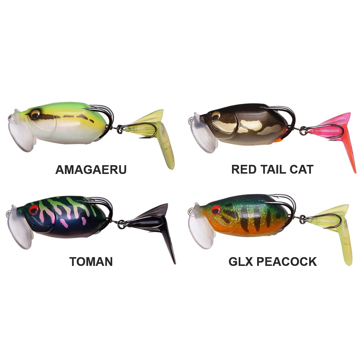MEGABASS BATRA-X รจ un topwater sviluppato per la pesca del Black Bass o dello Snake Head prodotto in collaborazione tra Monster Kiss (azienda guidata da Takuya Kozuka) e Megabass. BATRA-X presenta elementi di design innovativi e funzioni personalizzabili che lo distinguono dalle rane (HOLLOW FROG). Il corpo a proiettile piccolo ma ad alto volume realizza permette una grande lanciabilitร e un movimento molto adescante. La paletta morbida puรฒ essere applicata alla parte anteriore del corpo per un’azione crawler con vibrazioni e splash rumorosi. Senza la paletta l’azione sarร impressa dal polso del pescatore con il classico movimento walking the dog. La coda siliconica amovibile tipo paddle permette ulteriori vibrazioni ed ha un alloggiamento per uno star light da 2.9mm. Armatura interna in acciaio inox. MEGABASS BATRA-X (51mm/17.5g) รจ una rana con quattro movimenti diversi in base alle componenti montate. FECO, prodotto Eco-friendly certificato dall’organizzazione giapponese JB/NBC. Varie colorazioni disponibili.