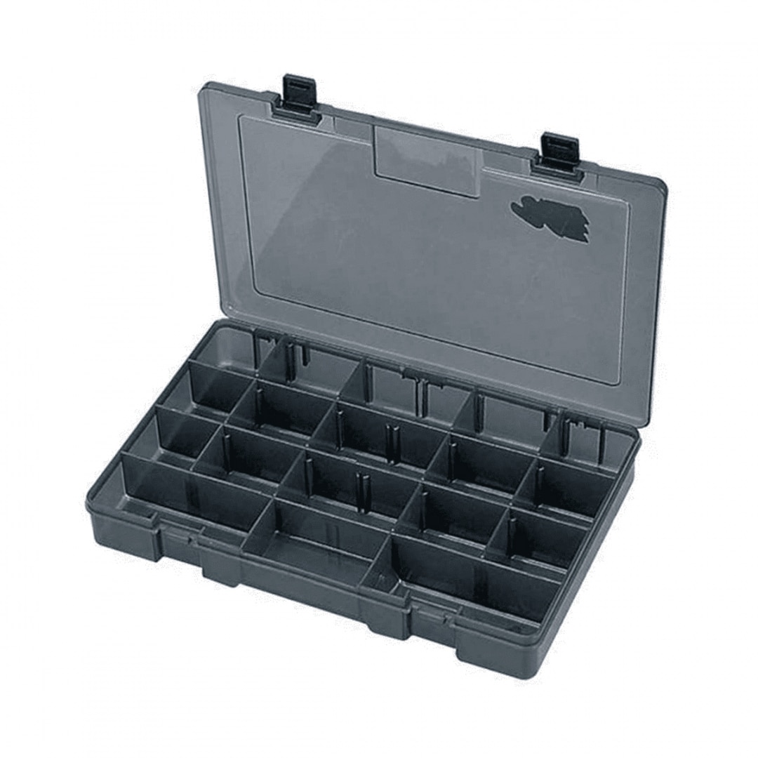 MEIHO VERSUS VS-3040 è una scatola in polipropilene con sei divisori fissi e dodici divisori amovibili. Comoda e pratica grazie all’apertura brevettata ONE TOUCH SYSTEM che consente di aprire e chiudere la scatola con una sola mano in modo tale da evitare aperture accidentali. FECO, prodotto Eco-friendly certificato dall’organizzazione giapponese JB/NBC. Dimensioni: 330 × 221 × 50 mm. Colore fumé.