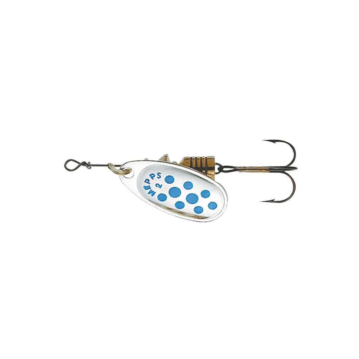MEPPS COMET è un cucchiaino rotante progettato per la pesca di salmonidi e non solo. A differenza del modello AGLIA, la sua paletta a foglia allungata lo rende ottimo per pescare in acque veloci. Il cavalierino, su cui è posizionata la paletta, permette una rapida ripresa di nuoto dopo un urto accidentale. MEPPS COMET DÉCORÉE è disponibile con base oro o argento e puntini blu o rossi.
