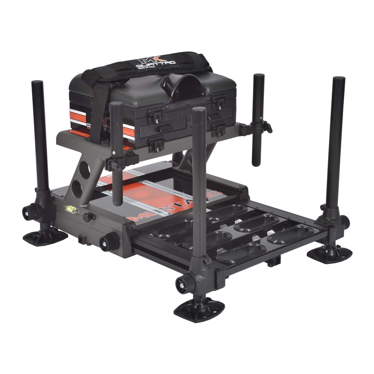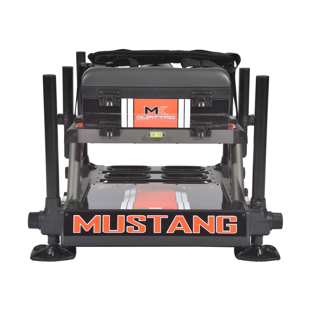 MK4 MUSTANG è un paniere costruito in alluminio di grado aeronautico, verniciato tramite uno speciale processo di cataforesi a polvere, tecnica di finitura che rende la superficie verniciata molto resistente. Paniere adatto a tutte le tecniche di pesca sviluppato su telaio aero-z, equipaggiato dal cuscino seduta di nuova concezione costruito con una iniezione di soft-gel ed una seconda memory foam tra la prima ed il rivestimento che da una ottima reazione alla seduta. Altre caratteristiche importanti sono il vano di 4 centimetri di altezza ricavato sotto i moduli e la nuova ed innovativa pedana antisdrucciolo con lavorazione lasercut a sei slot. Il paniere monta 4 gambe da 36 millimetri di diametro con telescopica da 30 millimetri. Prerogativa di questo paniere è la solidità a dispetto di un peso contenuto (14kg). Colori disponibili: Bianco, Grigio e Nero.
