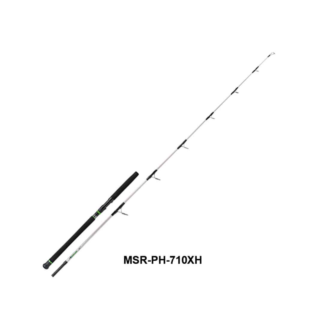 MSR-PH-710XH – La canna piรน potente della serie per i grandi predatori di acqua dolce e salata. La lunghezza ne consente lโutilizzo sia da terra che dalla barca. Nonostante la grande potenza, lโelevato max drag e le notevoli prestazioni di lancio รจ dotata di un cimino molto sensibile, per gestire ottimamente anche esche molto leggere, che spesso occorre utilizzare nella pesca del siluro o del tonno.