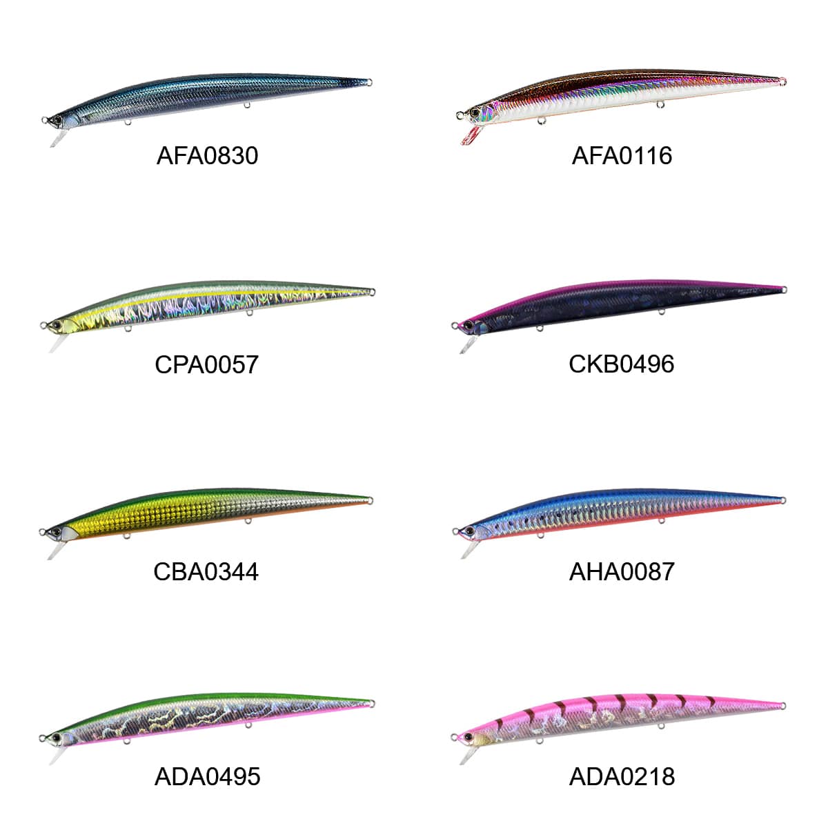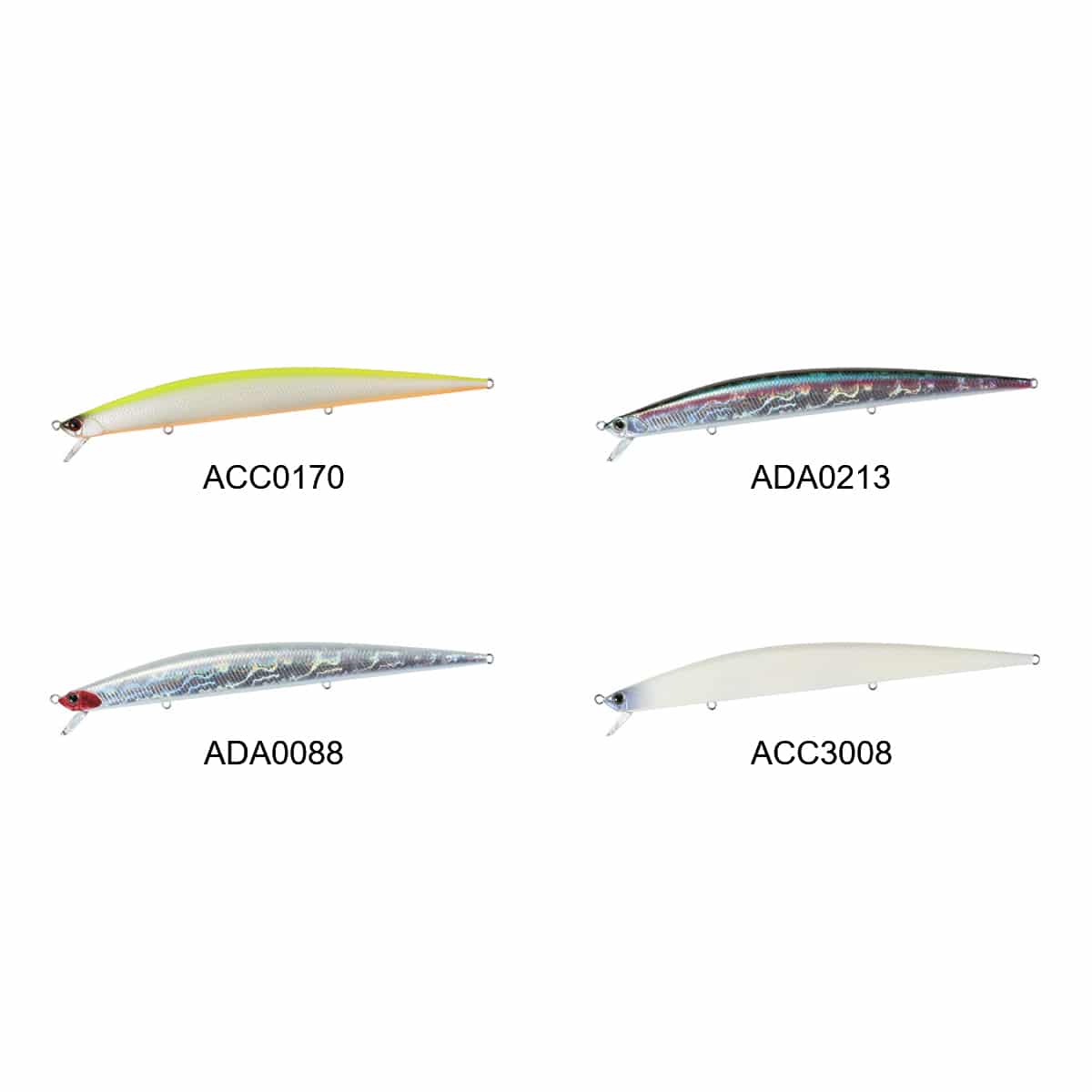 DUO TIDE MINNOW SLIM 140 FLYER รจ un long jerk affondante che puรฒ essere definito il massimo in termini di distanza di lancio della serie Tide Minnow!!!! Sulla base dei feedback ricevuti dai pescatori di tutto il mondo รจ stata messa a punto questa evoluzione del concetto Tide Minnow con prestazioni veramente eccezionali in condizioni specifiche. Il Flyer 140 รจ un modello affondante creato sulla base del Tide Minnow-Slim 140, in cui รจ stata estremizzata la lanciabilitร . Questa esca brilla nelle condizioni atmosferiche piรน difficili, utilizza il 175 Flyer quando nessun altro artificiale puรฒ essere utilizzato efficacemente! DUO TIDE MINNOW SLIM 140 FLYER (140mm/21g) รจ equipaggiato di tre ancorette DECOY #6 e raggiunge una profonditร di nuoto tra gli 80 ed i 110cm.
