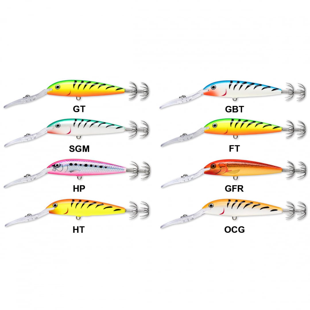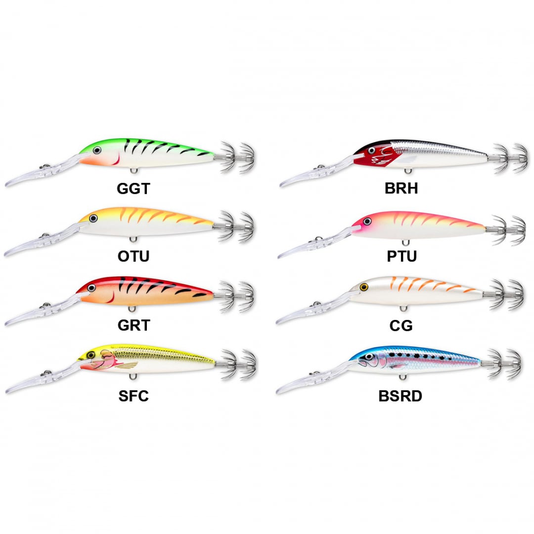 RAPALA DEEP SQUID รจ un minnow affondante in balsa prodotto per la cattura di cefalopodi in quanto รจ dotato di un doppio cestello in acciaio inox. Una volta lanciato, grazie alla generosa paletta, riuscirร a nuotare ad una profonditร di 3,3 metri. RAPALA DEEP SQUID 9 (90mm/15g) puร essere utilizzato a traina ma anche a spinning. Alcune colorazioni sono UV BRIGHT ovvero colorazioni luminescenti che si illuminano se esposte alla luce di lampade UV. Progettato in Finlandia.