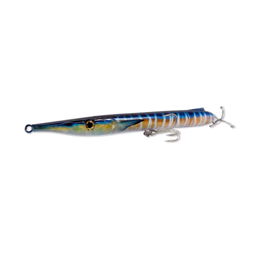 NOMURA HOKKAI NEEDLE è un needle galleggiante che imita perfettamente l’aguglia ed è caratterizzata da un nuoto estremamente realistico. La speciale pinna posteriore consente lanci stabilizzati ed il peso gli permette di raggiungere distanze considerevoli. L’assetto galleggiante lo rende perfetto per stimolare la reazione di prede apatiche in condizioni di poca onda. Le ancorette saltwater-proof sono unite internamente col sistema Through-Wire che ne aumenta considerevolmente resistenza e durata. NOMURA HOKKAI NEEDLE (21cm/30g) è consigliato per insidiare pesci serra e leccie ma risulterà irresistibile a tutti i predatori marini.