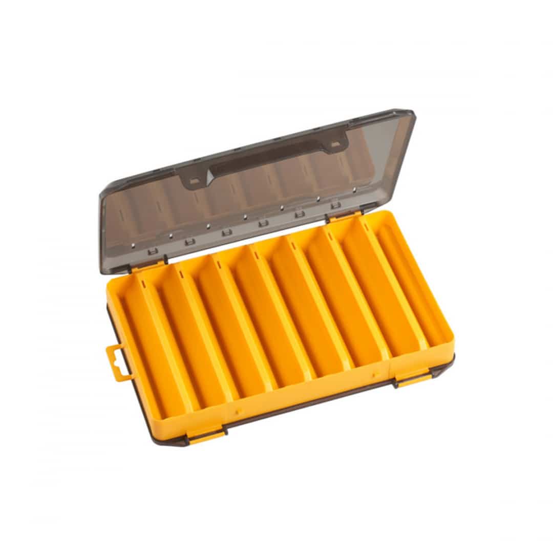 PANARO 184 รจ una scatola porta artificiali bifacciale con scanalature per riporre le esche singolarmente. Fessure di drenaggio su entrambi i lati per lavare le esche e fessure di ventilazione laterali per facilitare l’asciugatura dopo l’uso. Presa grip superiore per aprire facilmente il coperchio. Questo modello puรฒ ospitare esche artificiali fino a 155mm di lunghezza. Adatta per squid jig o long jerk. Non adatta per esche voluminose come i popper tipo HALCO ROOSTA POPPER 135. Dimensioni: 275 x 185 x 48 mm. Disponibili in due differenti colori: Smoke Grey e Smoke Yellow con tappo fumรจ.