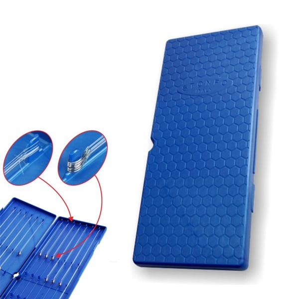 STONFO PORTAFINALI 200ย รจ un contenitore studiato per riporre e proteggere una grande quantitร di finali nelle lunghezze da cm 7 a 20 e loro multipli. Compatto e molto leggero ha 13 posizioni di fissaggio e puรฒ contenere oltre 100 finali pronti allโuso. I piolini di sostegno sono di dimensione adeguata sia nel diametro che in lunghezza per permettere di alloggiare ami ed asole di ridotta grandezza. La lunghezza del finale รจ chiaramente indicata allโinterno del contenitore.
